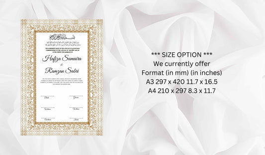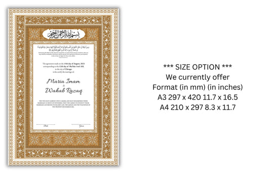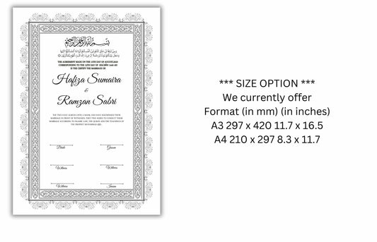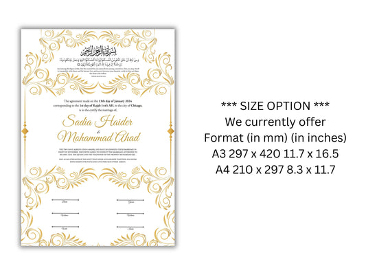 Luxury Nikkah certificate ,A3/a4 Nikkah Nama, Nikah , Islamic wedding contract, Muslim Marriage Certificate, Personalised Names. NN137