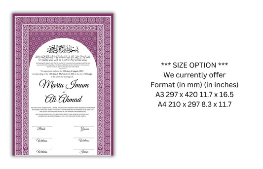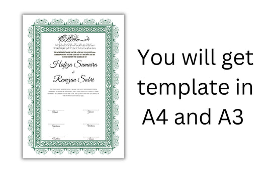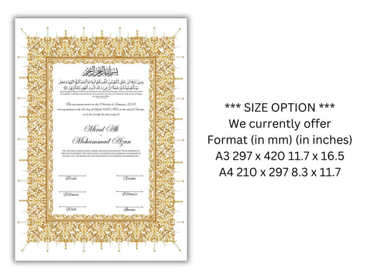 Printable Nikkah Contract, Islamic Wedding Contract, Muslim Nikkah Certificate, Personalised, A4, A3, Template, Instat Download. NN202