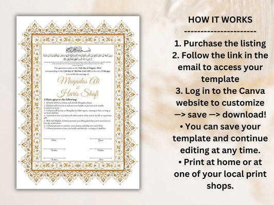 Nikkah Contract Template, Printable Nikkah Contract, Editable Nikkahnama, Muslim Wedding Certificate, Islamic Marriage Contract. NN108