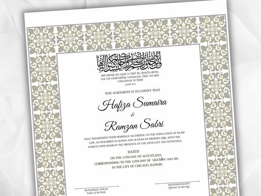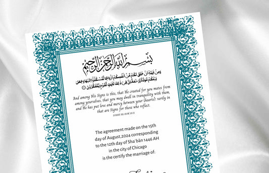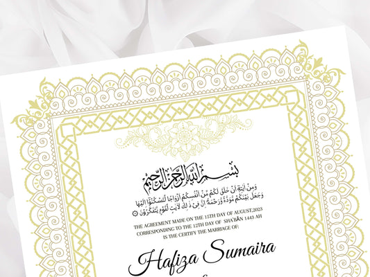 Premium Nikkah Contract | Custom Nikkah Nama | Islamic Wedding Contract | Personalized | Digital Printable Nikkah Certificate. NN203