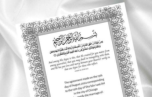 Nikkahnama, Template, Quran Verse, Muslim Wedding Gift, Digital Download. NN95