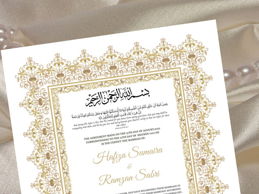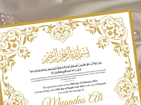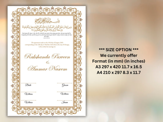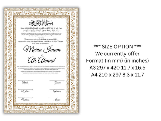 A4/A3 Nikkah Certificate, Customizable Luxury Islamic Nikkah Marriage Contract Certificate, Muslim Wedding Gift. NN257