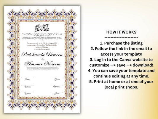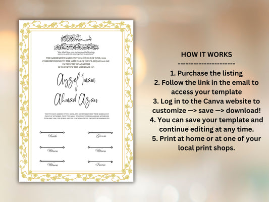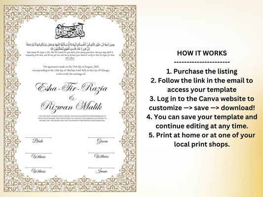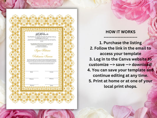 Nikkah Certificate Digital Download Personalised, A4, A3, Template, Editable, Nikkah Nama, Nikkah Contract, Muslim Contract. NN243