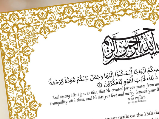 Nikkah Certificate, Nikkah Islamic Marriage Certificate, Printable, Custom Name Nikkah. Quran Verse, Digital Download. NN246