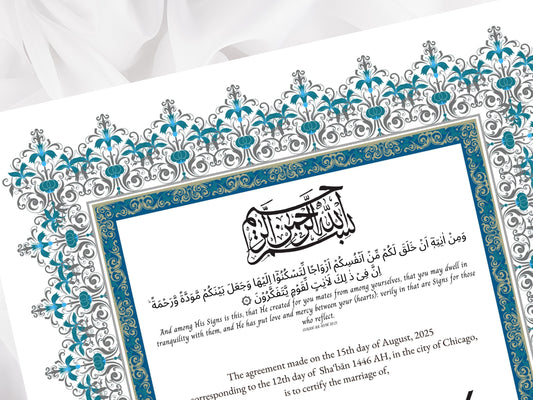 Nikkah Certificate Digital Download Personalized, Luxury Nikkah Contract, Islamic Wedding Contract, Personalized Muslim Wedding Gift. 147