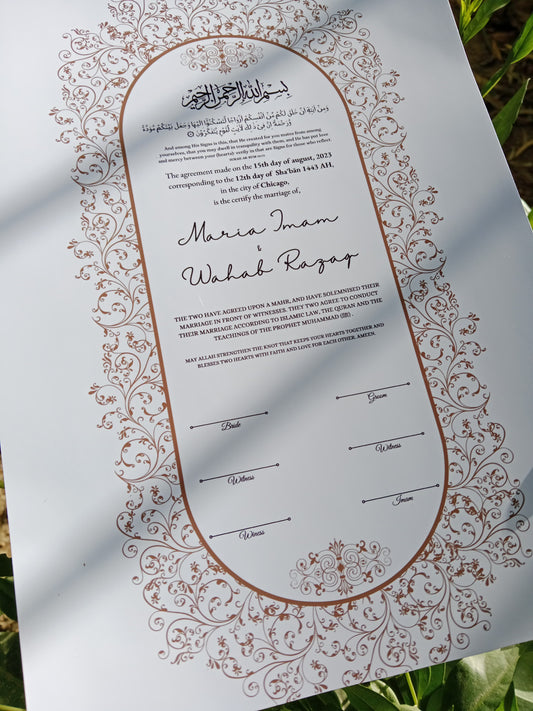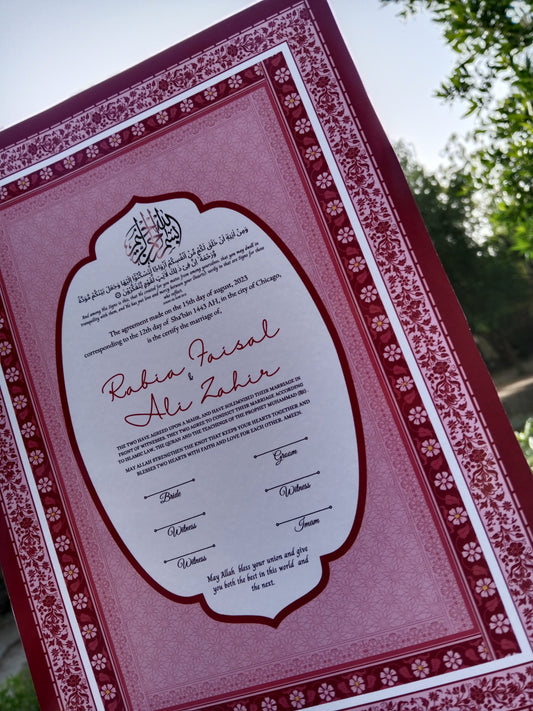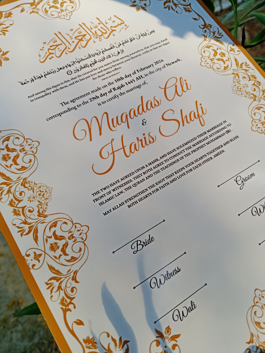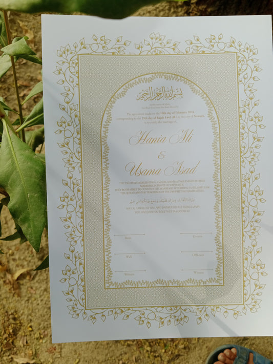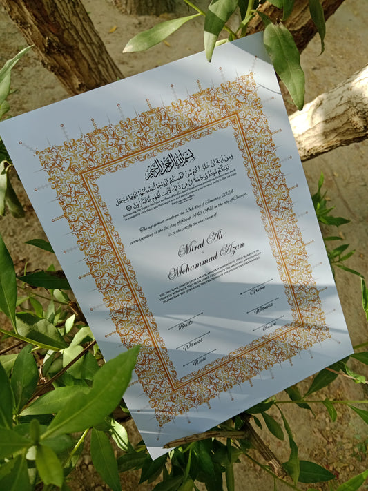 Our nikkah certificates are made on 250gsm high quality photo-paper which enhances the colour and saturation of the design.