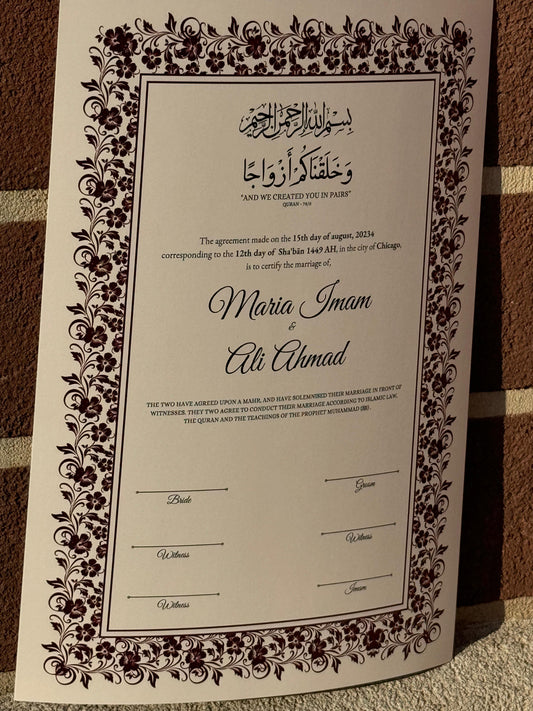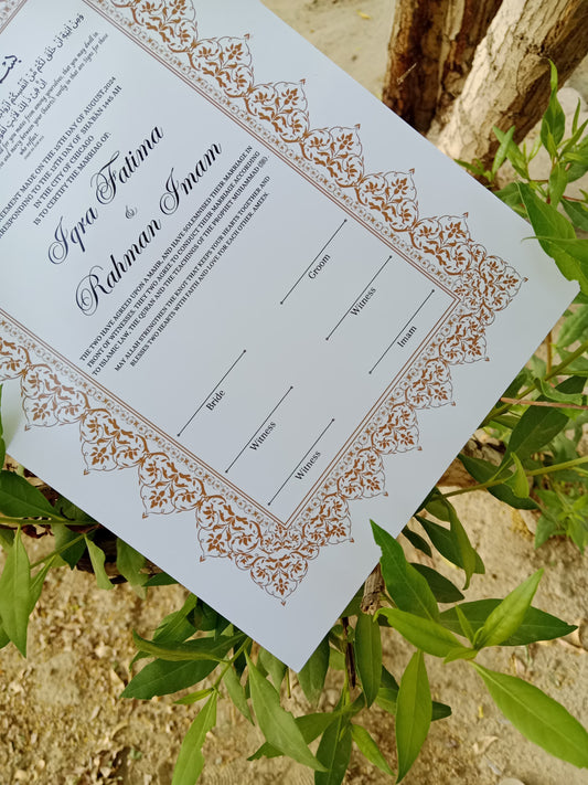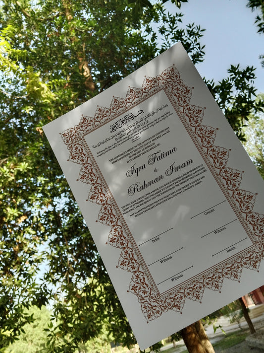 Nikkah Certificate, A3 Islamic Wedding Contract, Nikkah Nama, Muslim Marriage Certificate, Personalised Names, Brocade for Muslim Couples