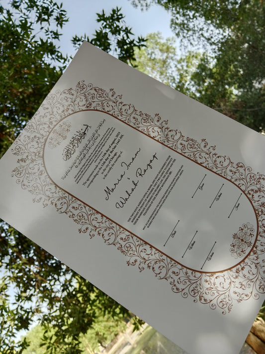 Our nikkah certificates are made on 250gsm high quality photo-paper which enhances the colour and saturation of the design.