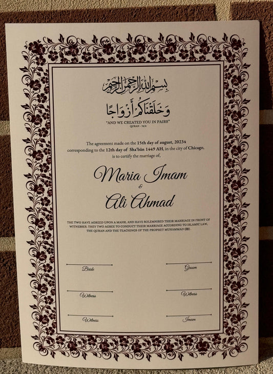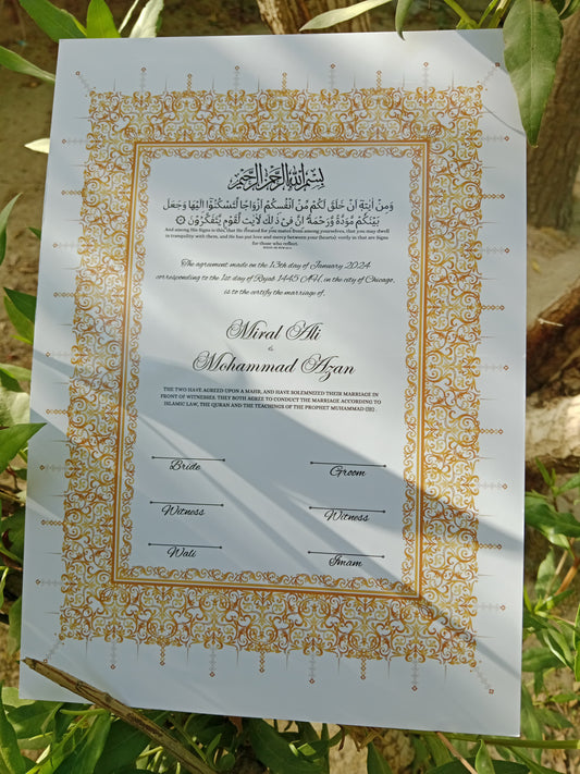Nikkah Certificate A3, Nikkah Certificate, Nikkahnama, Muslim Marriage Certificate, A3 Certificate. 273