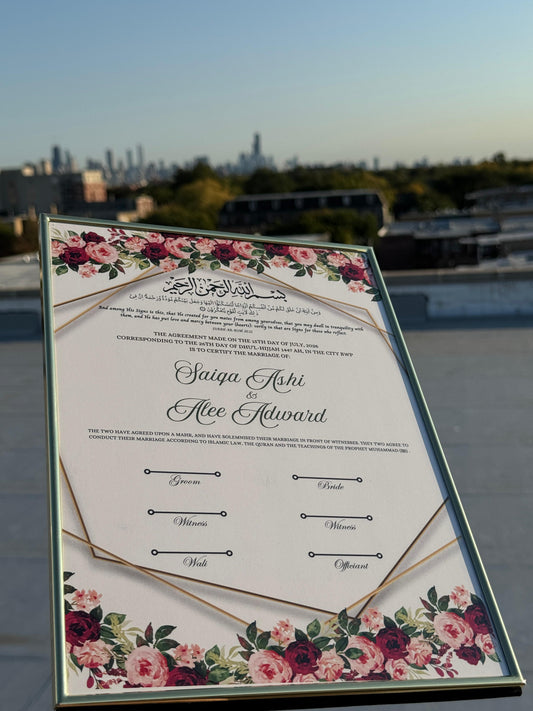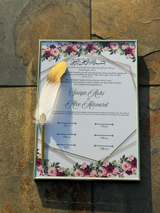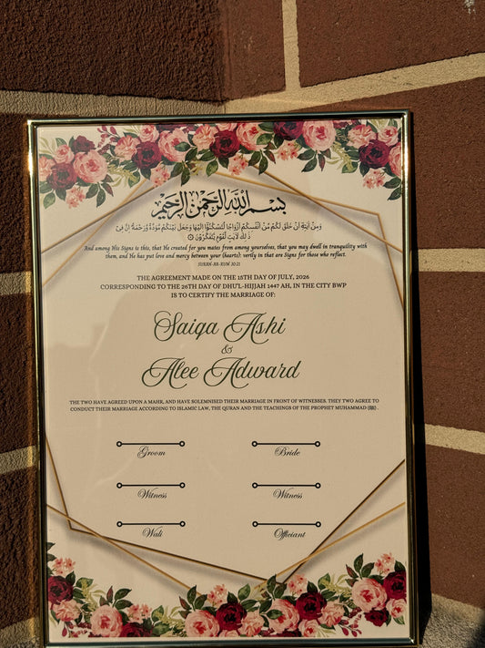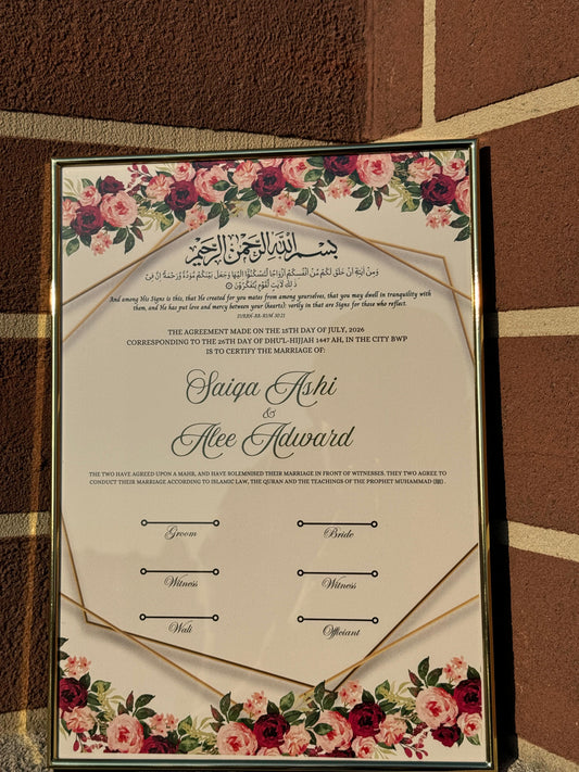 Nikkah Certificate A4 With Frame, Islamic Wedding Contract, Muslim Marriage Certificate, Nikkah Nama, Personalised Names. Nikkah Certificate, 278