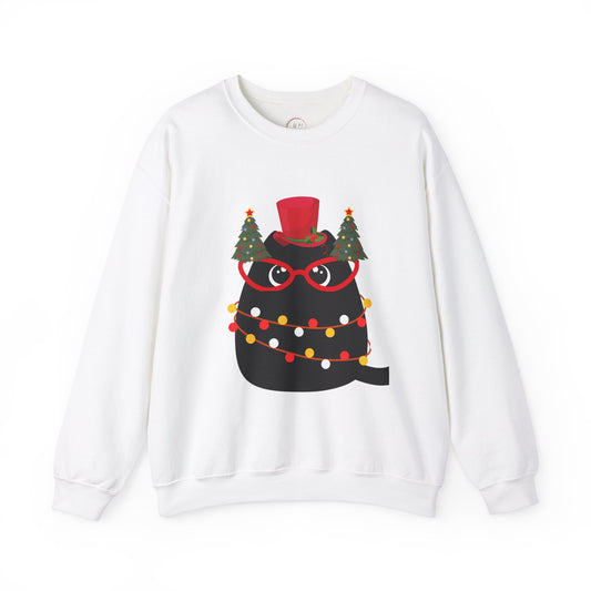 Christmas Cute Cat Sweatshirt Cat Lover Crew Neck Sweatshirt