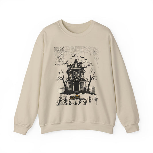 Haunted House Sweatshirt, Cozy Halloween Crewneck, Spooky Gift, Autumn Fashion, Unisex Sweatshirt, Halloween Apparel, Night Outwear