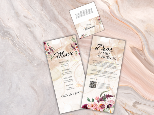 Wedding Invitation Bundle, RSVP, Thank You Card, Table Card, Menu Card, Reception Card, Details Card. WI270