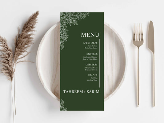 Wedding Menu Card Template, Table Card Thank you Card. WI265