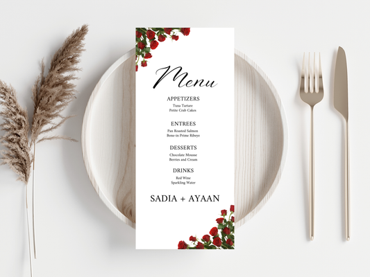 Wedding Menu Card Template, Table Card Thank you Card. WI269