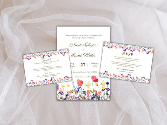 Wedding Invitation Set, RSVP, Wedding Invitation, Details, Editable, Template, WI261