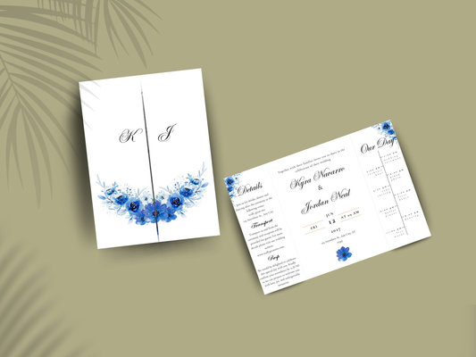 Blue Floral Wedding Itinerary Template, Save The Date Schedule Card, Elegant Navy Wedding Day Timeline, Printable Itinerary Invitation.WI175
