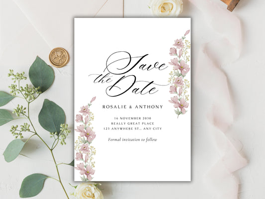Blush Floral Wedding Invitation Set, Pink Roses Wedding Invite Template Bundle, Printable Wedding Invite, Editable Template. WT44