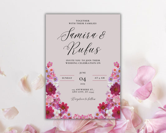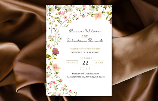 Wedding Invitation Set, Wildflower Invitation, Wedding Invitation Template, Boho Wildflower Invitation, Editable Template, Digital. WIT66