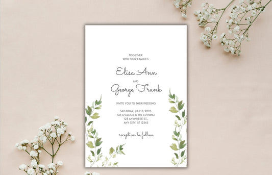 Sage Green Wedding Invitation Suite with Menu Card, Editable Wedding invite, Minimal Invite, Simple Editable Invite Template. WT56