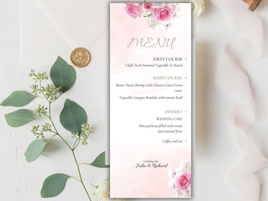 Pink Flowers Wedding Invitation set, Pink Floral RSVP, Elegant Pink Rose wedding Invitation, Details , Editable,Template, WT47