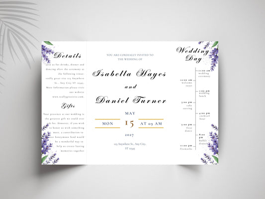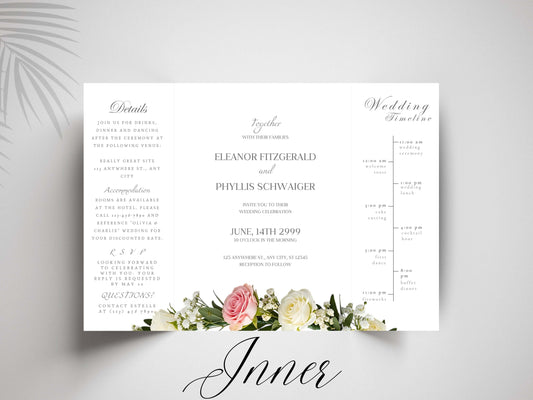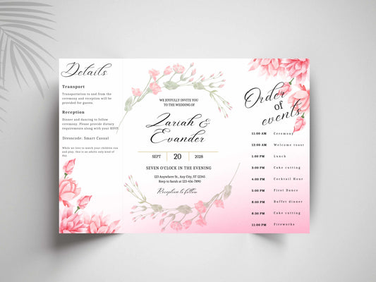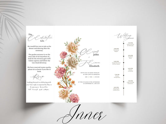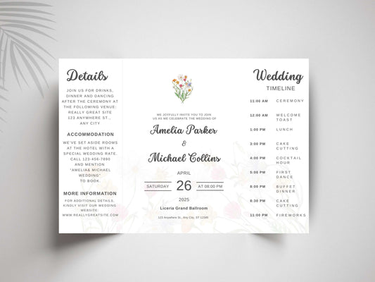 Elegant Floral Wedding Invitation Trifold Card Itinerary and Details Template Modern Editable Printable Invite. WI172