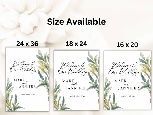 Green Leaves Wedding Welcome Sign Template, Greenery Wedding Welcome Sign Printable, Wedding Welcome Sign Download. WS11