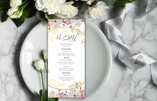 Wedding Menu Template Download, Pink Rose Wedding Menu Card, Menu Template, Wedding Menu, , Modern Dinner Menu, Instant Download, WS50
