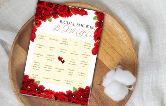 Bridal Bingo Game Template, Red Rose Bridal Shower Game Printable, Bridal Shower Template, Floral, Wedding Bingo, Instant Download, WS49
