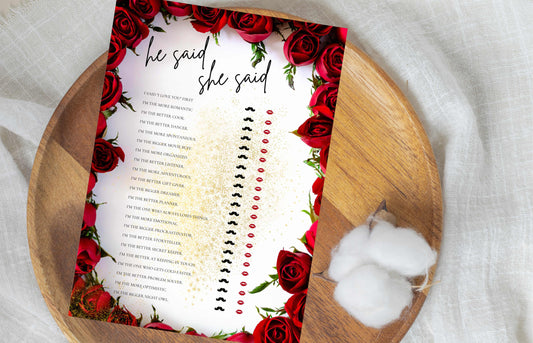 Red Rose He Said She Said, Bridal Shower Game, Printable Bridal Shower, Floral Bridal Shower Editable Games, Red Rose Bridal Shower. WS54