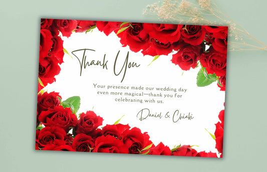 Red Rose Thank You Card, Floral Wedding Thank you Card , Editable Template, Printable Thank You Card, Editable Thank you Card. #WTUC45