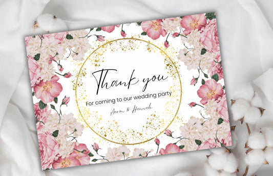 Wedding Thank You Card | DIY Card | Pink Roses Wedding Thank You Cards | Thank You Card Template | Floral Thank You Cards Download. WS43