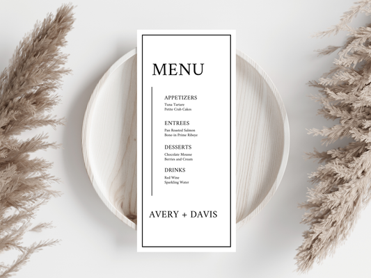 Wedding Menu | Editable Printable Table Place Card. WI205