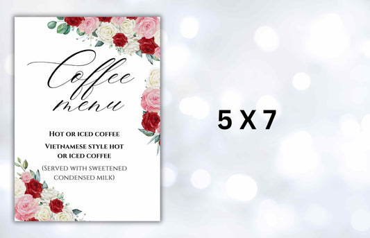 Menu Sign for Wedding, Printable Coffee Card Menu, Editable Coffee Bar, Wedding Signage, Coffee Menu Sign Template, Editable Template. ws34