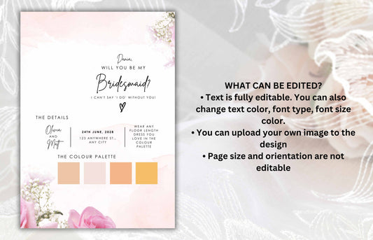 Will You Be My Bridesmaid Card, Bridesmaid Proposal Card, Editable Bridesmaid Proposal Card Template, INSTANT DOWNLOAD, BT45