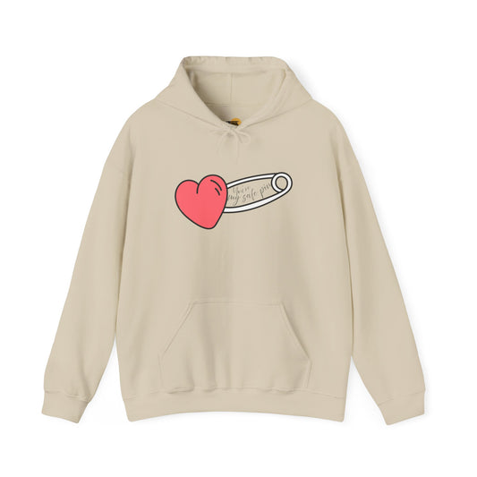 Heart Safety Pin Hoodie, Cozy Sweatshirt, Cute Gift for Her, Valentine's Day Apparel, Casual Streetwear