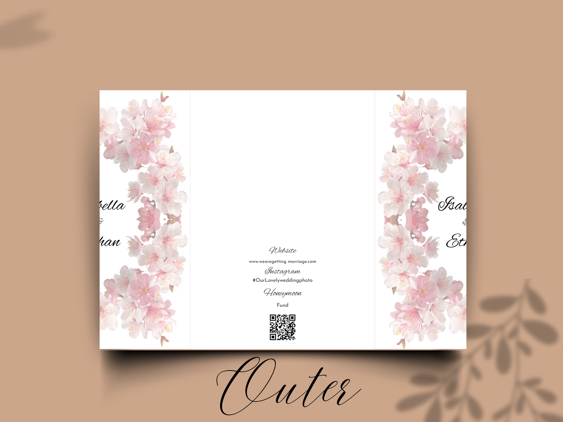 Elegant and romantic, this Cherry Blossom Wedding Invitation Template is perfect for modern couples who love soft, floral details. Designed in a beautiful gatefold/trifold layout, this template is fully editable in Canva — allowing you to personalize every element with ease.