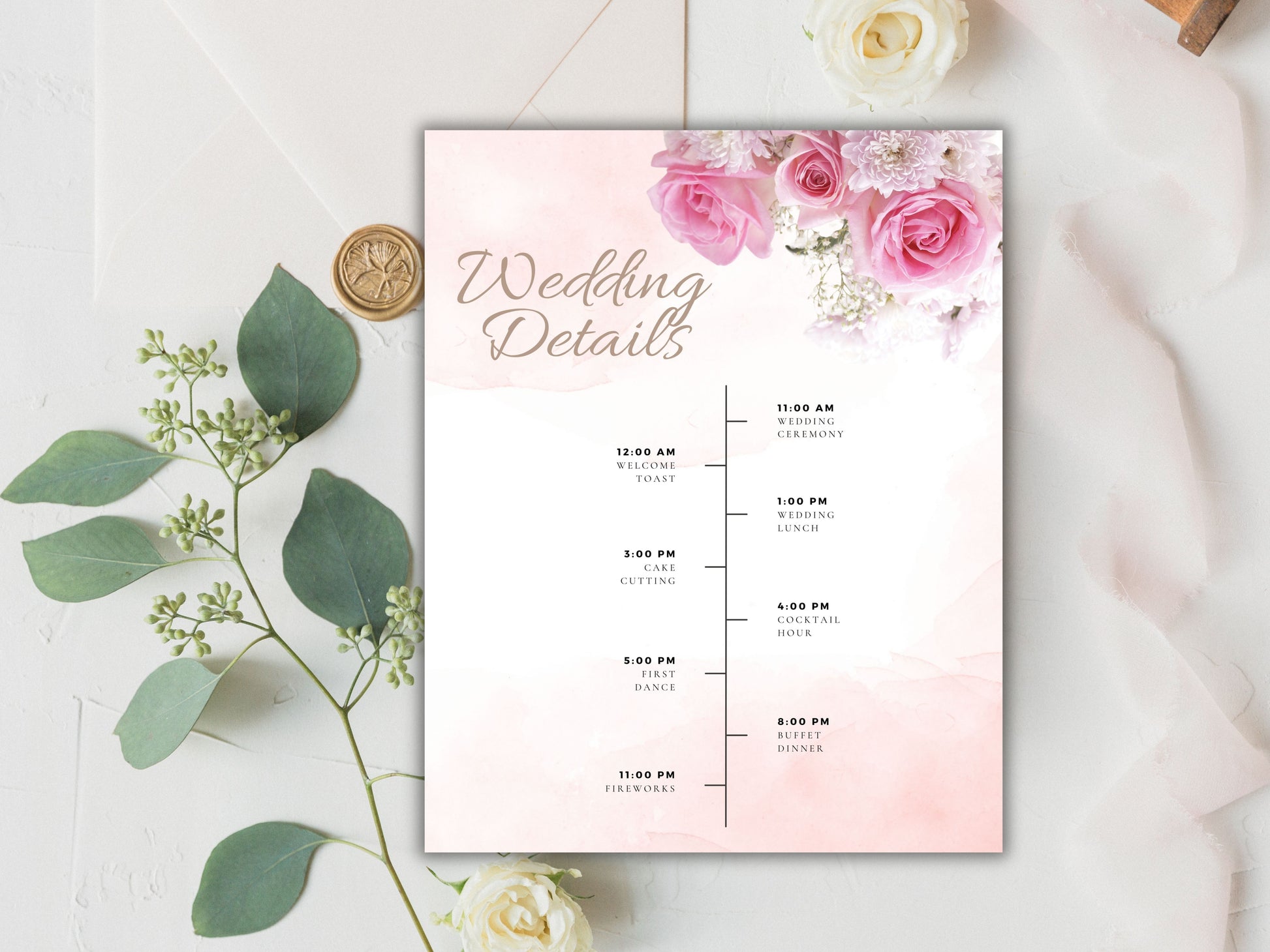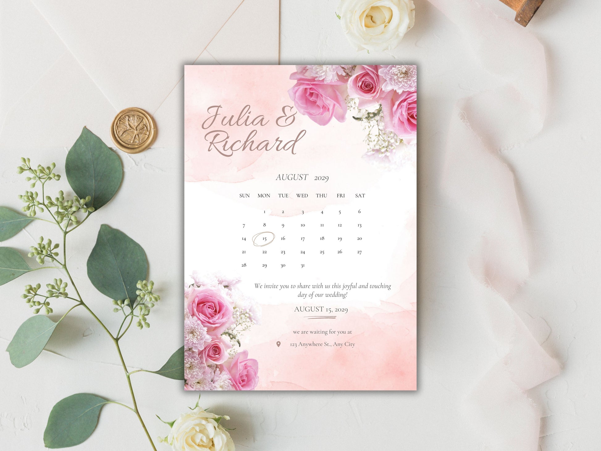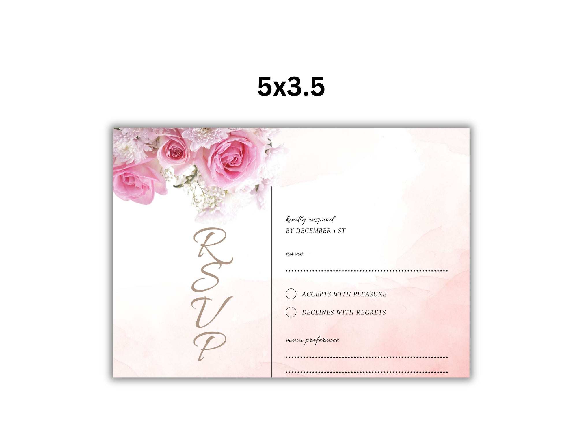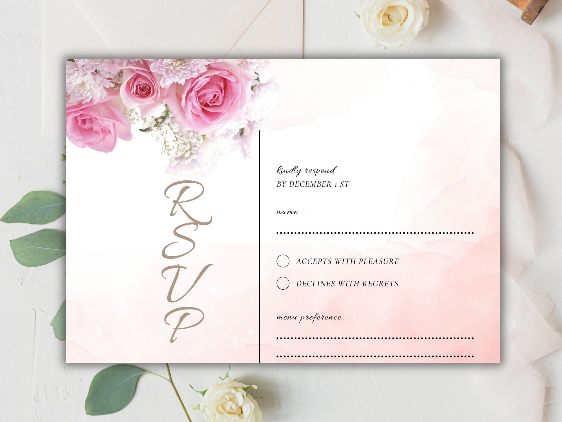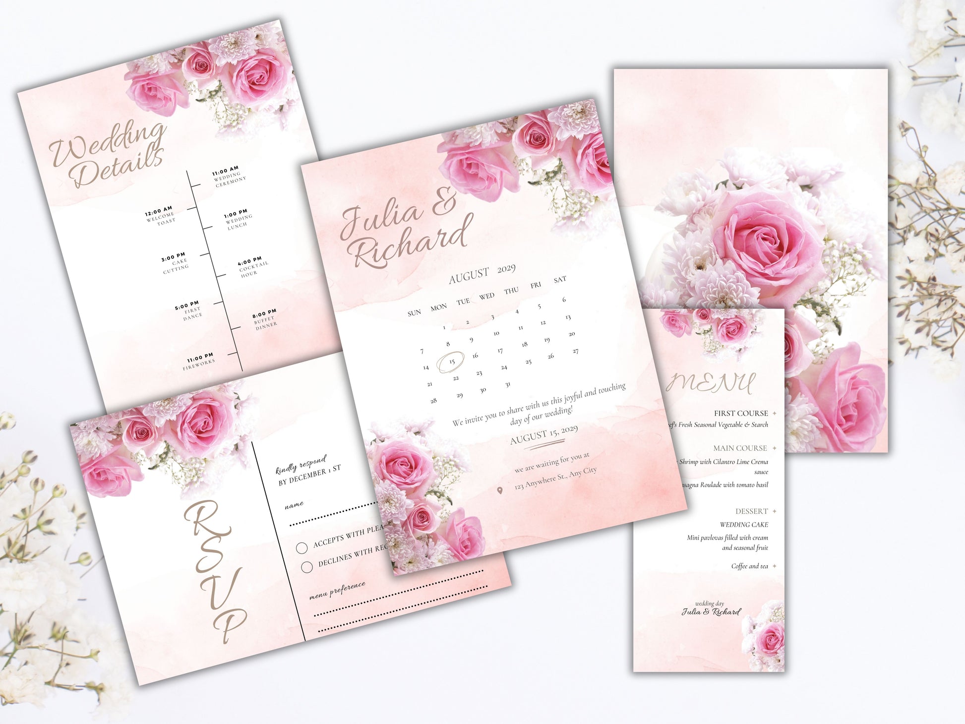 Blush Floral Wedding Invitation Set, Pink Roses Wedding Invite Template Bundle, Printable Wedding Invite, Editable Template. WT44