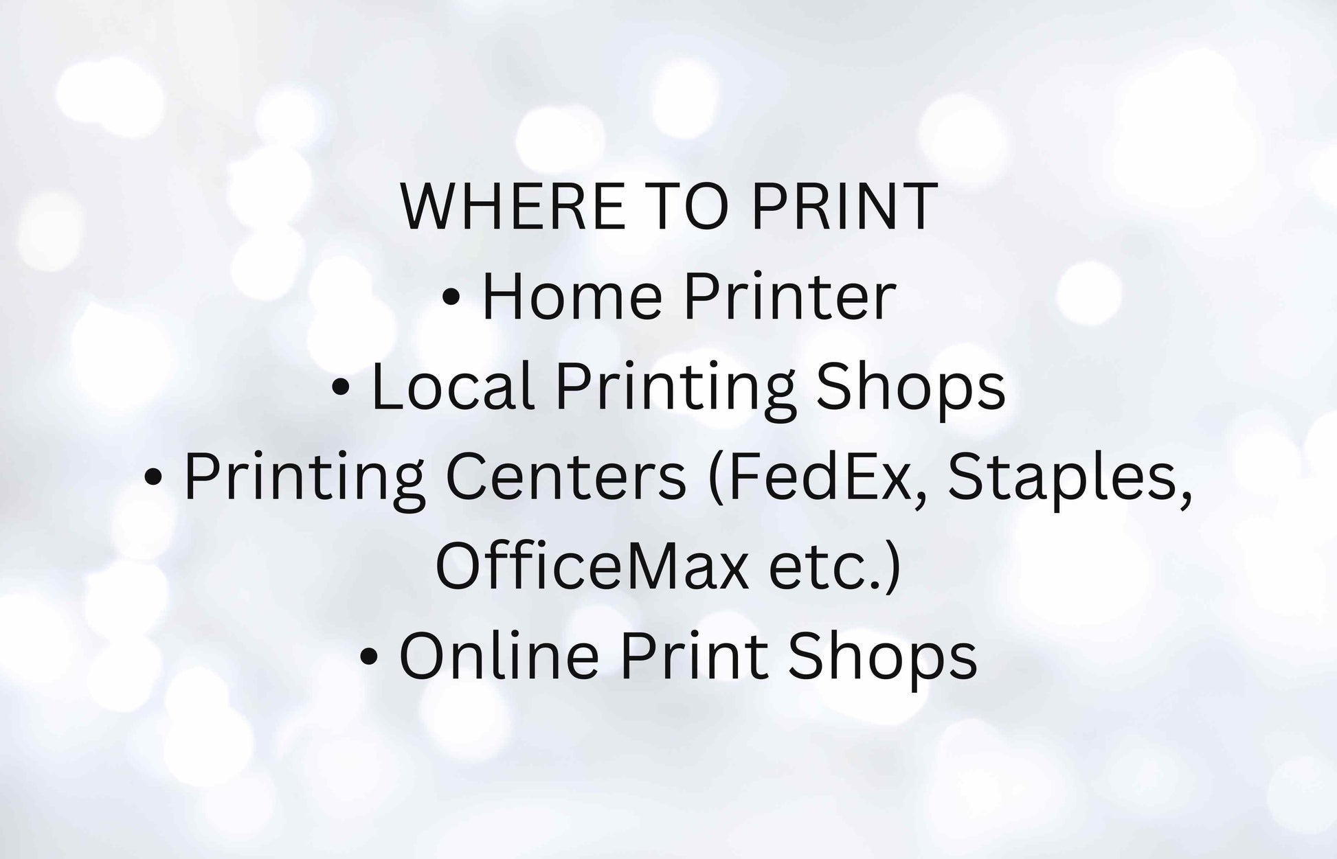 • Print at home or at one of your local print shops.