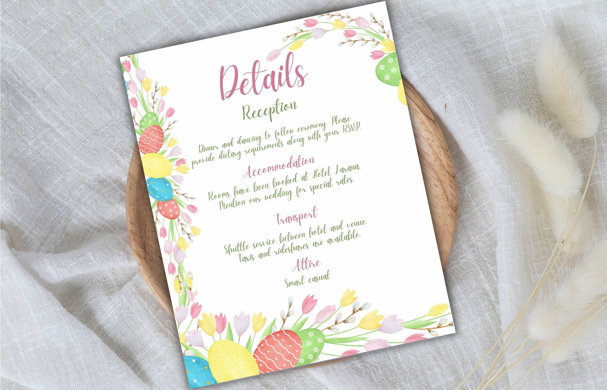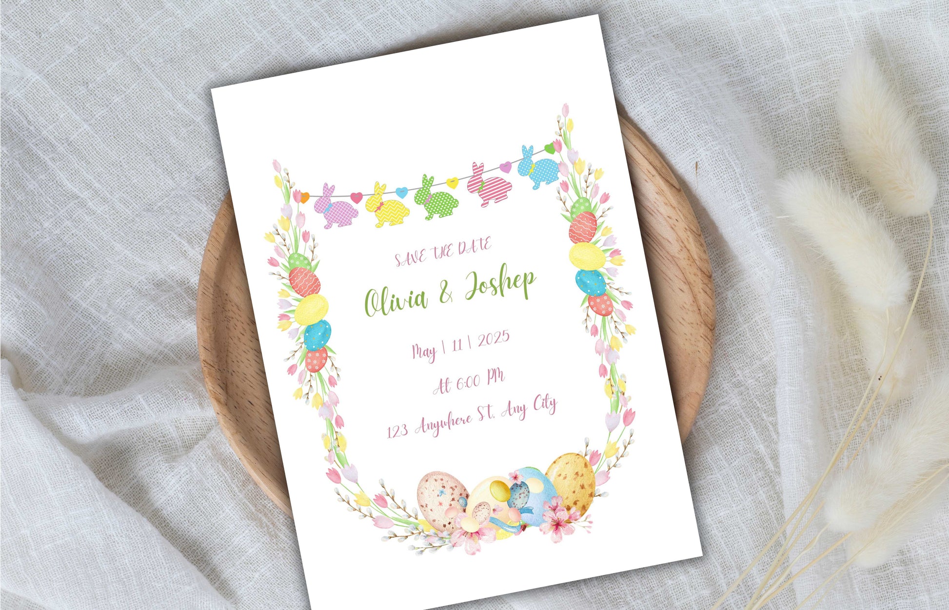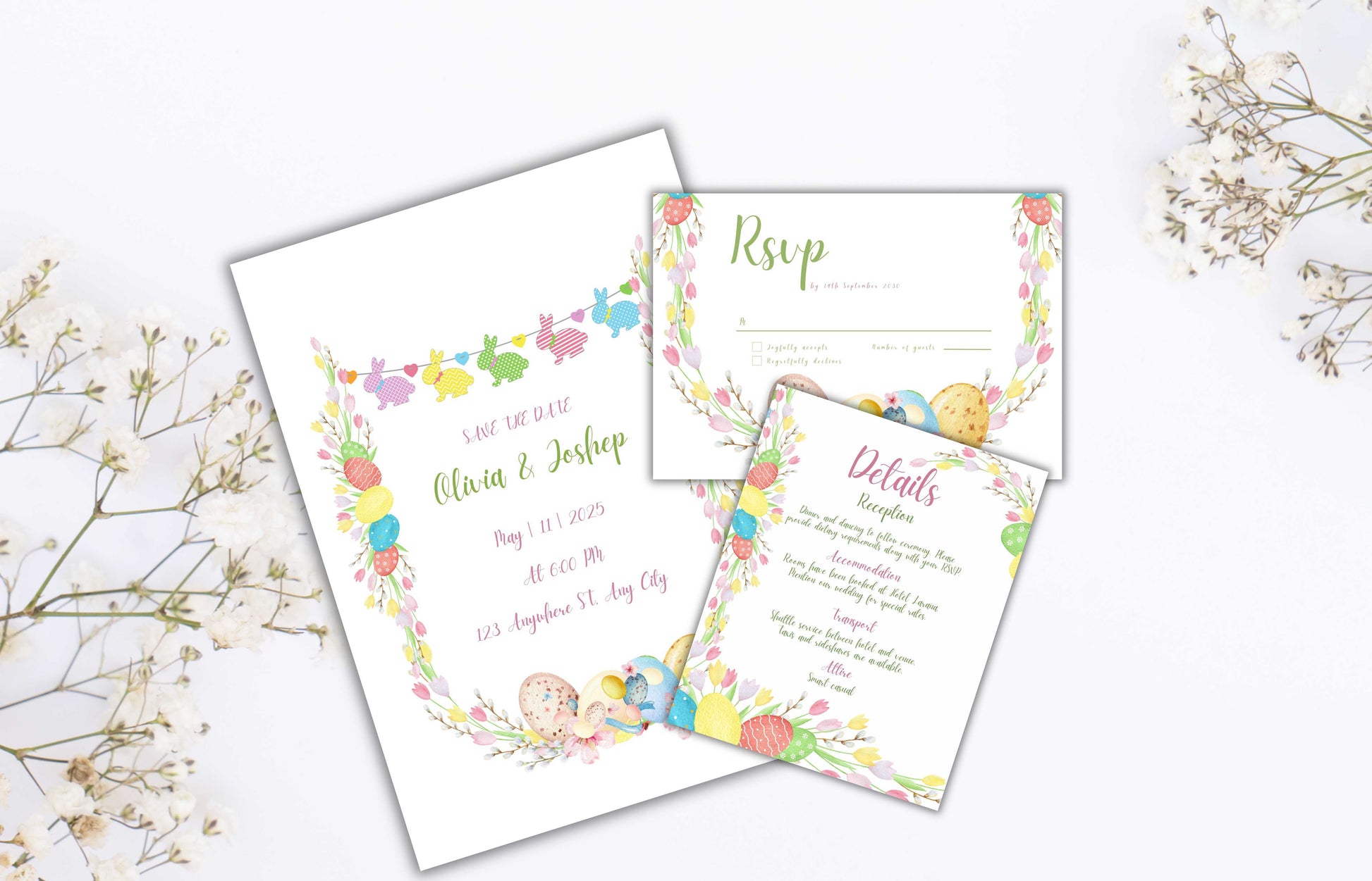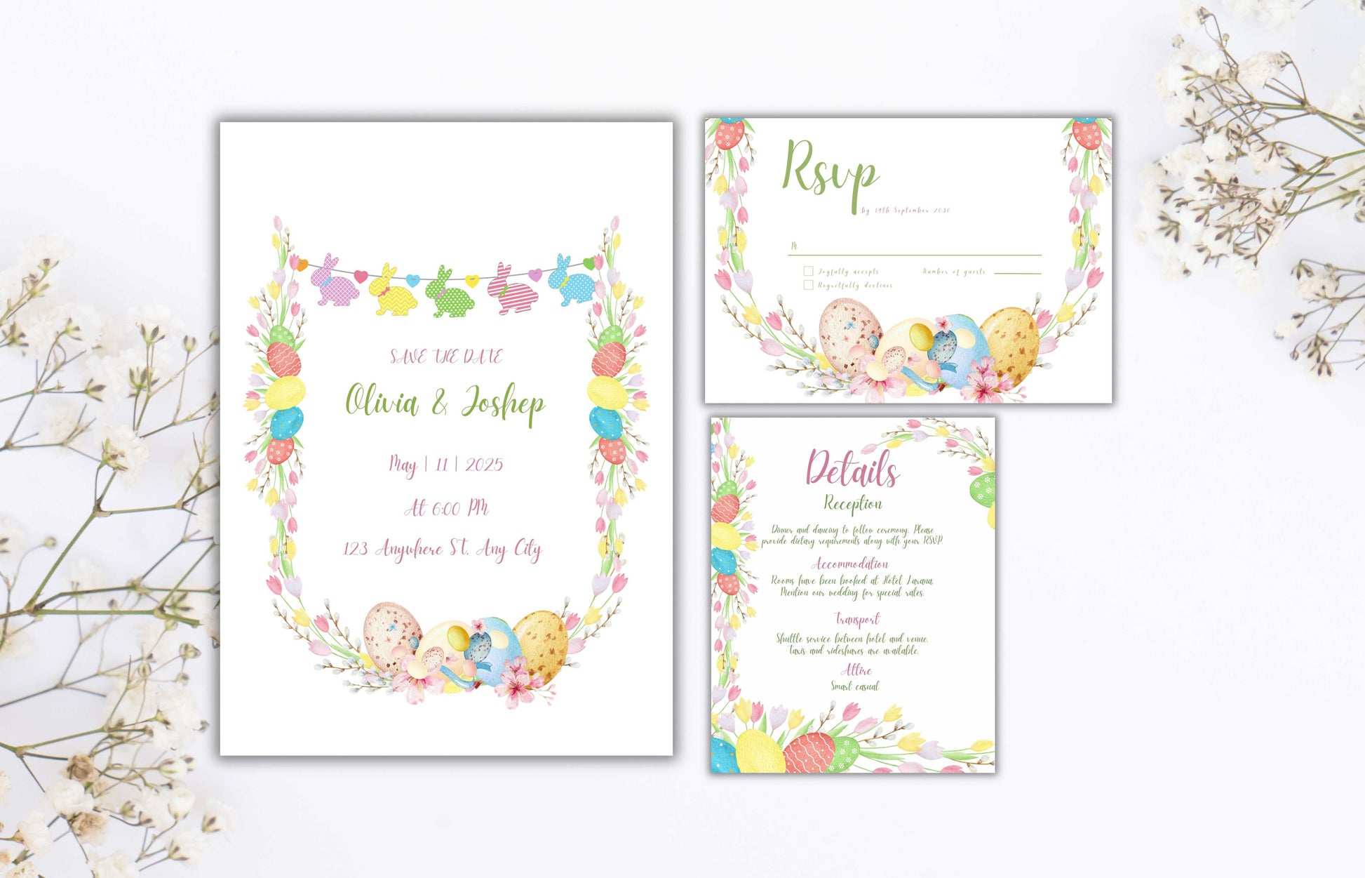 Easter Wedding Invitation Suite, Colorful Wedding Invitation Template, Editable Template, Floral invitation, Easter Wedding Bundle. WSB64
