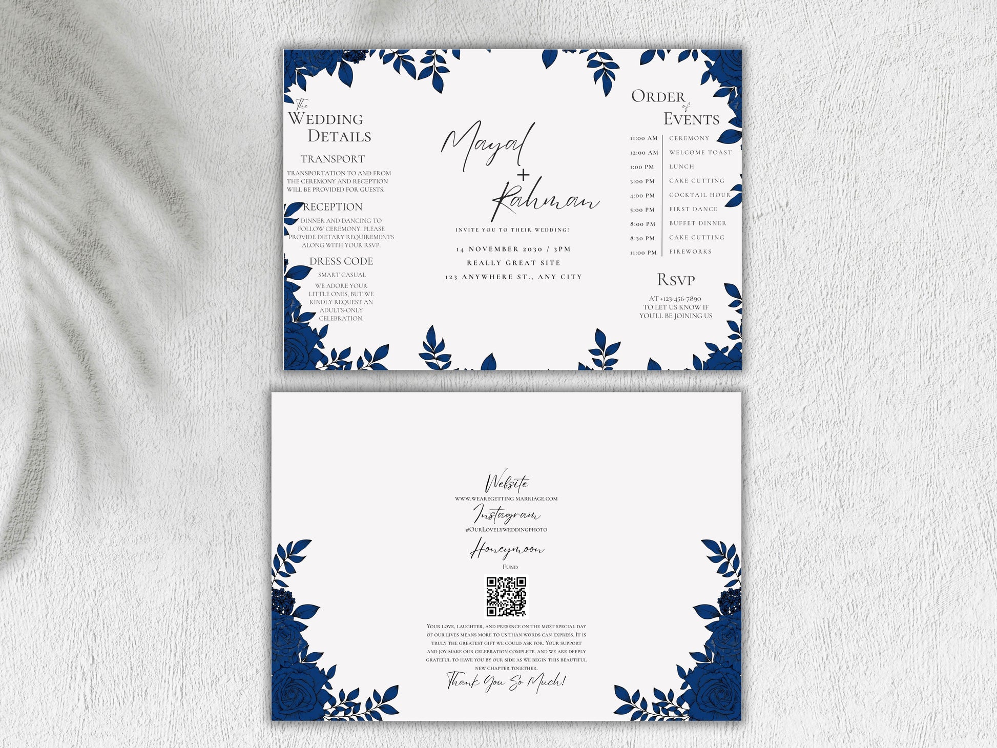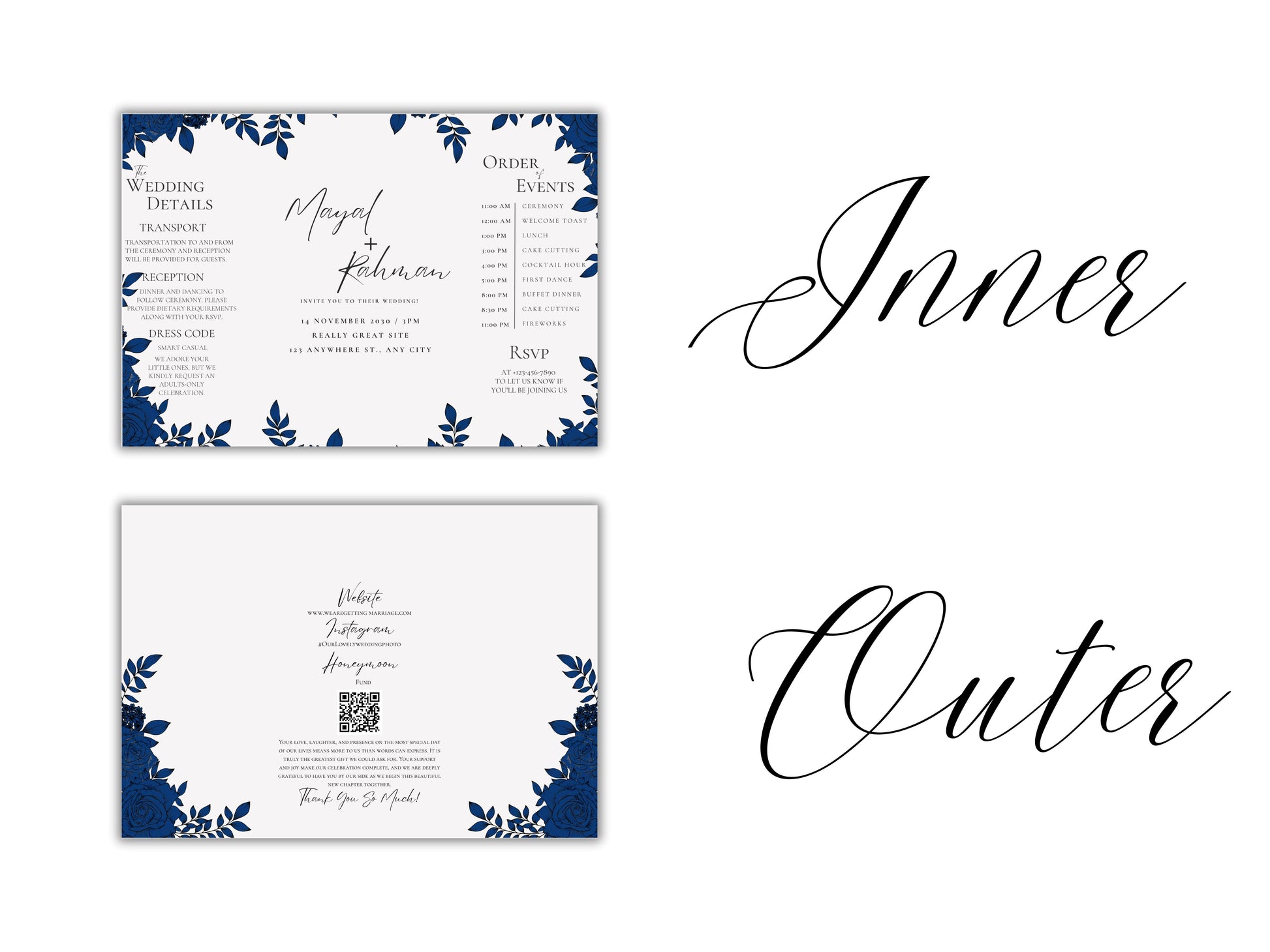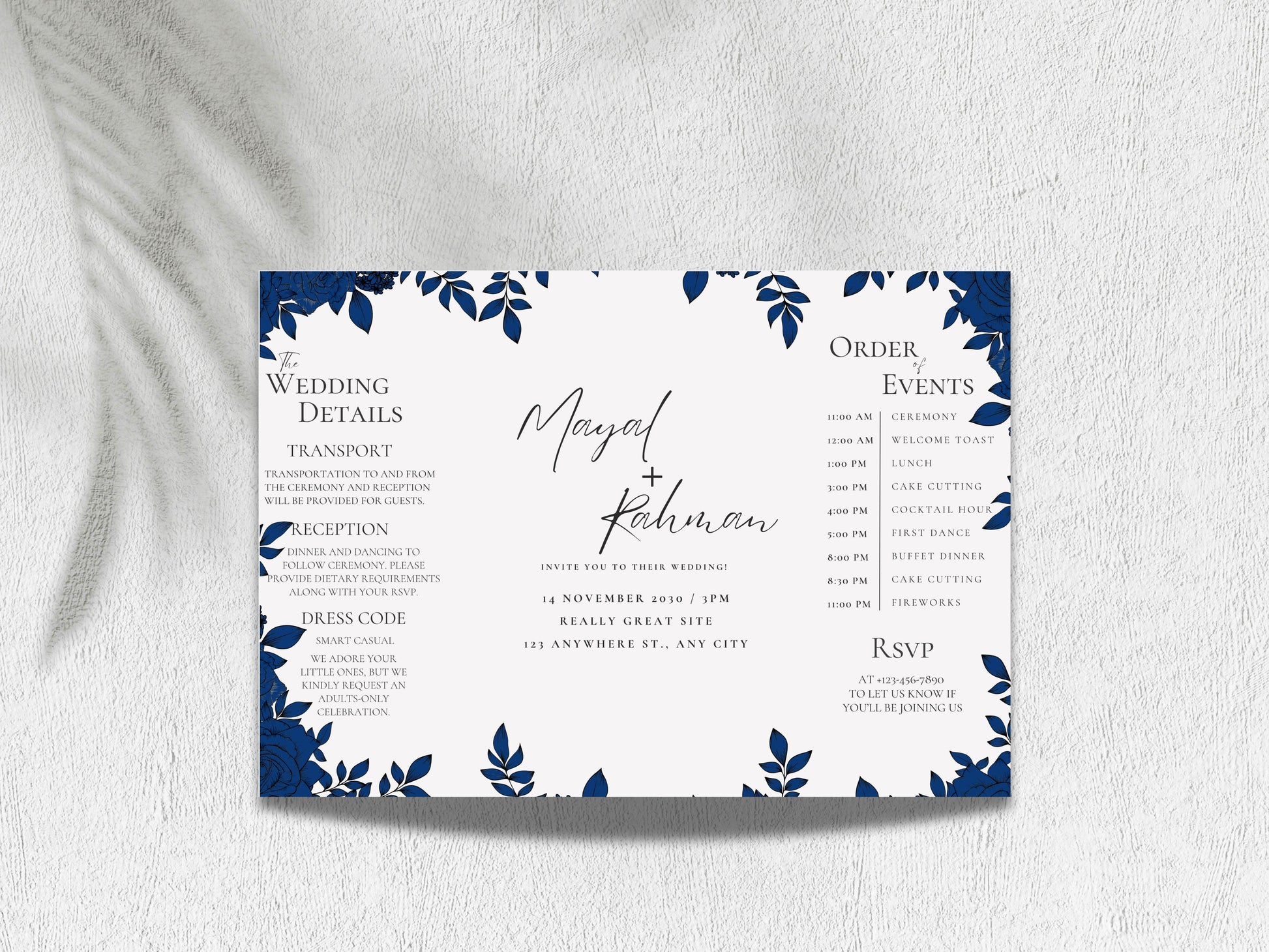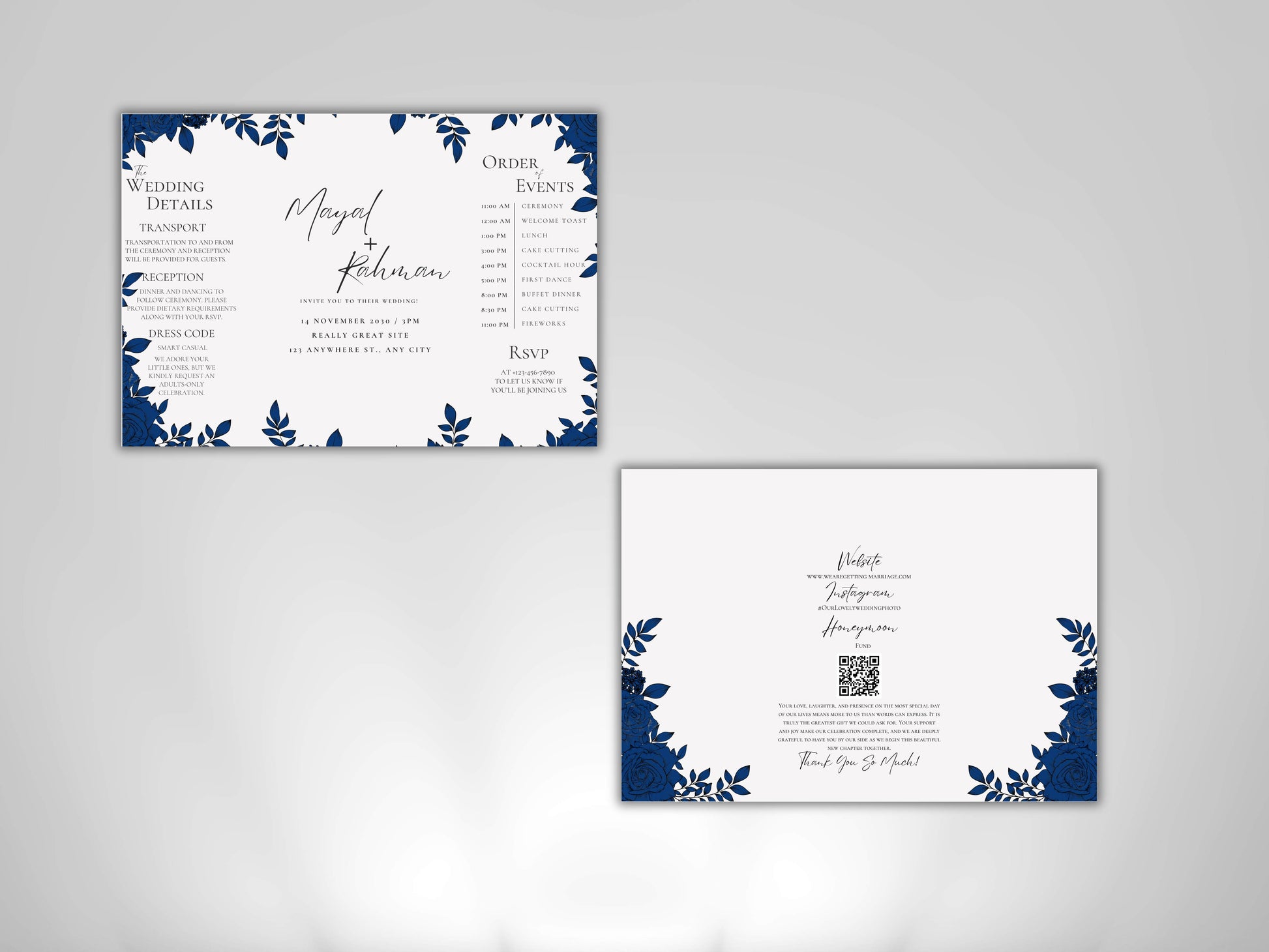 Elegant Gatefold Wedding Invitation | Blue Floral Printable Invite | Modern Ceremony Reception Card | Editable Template. WI133