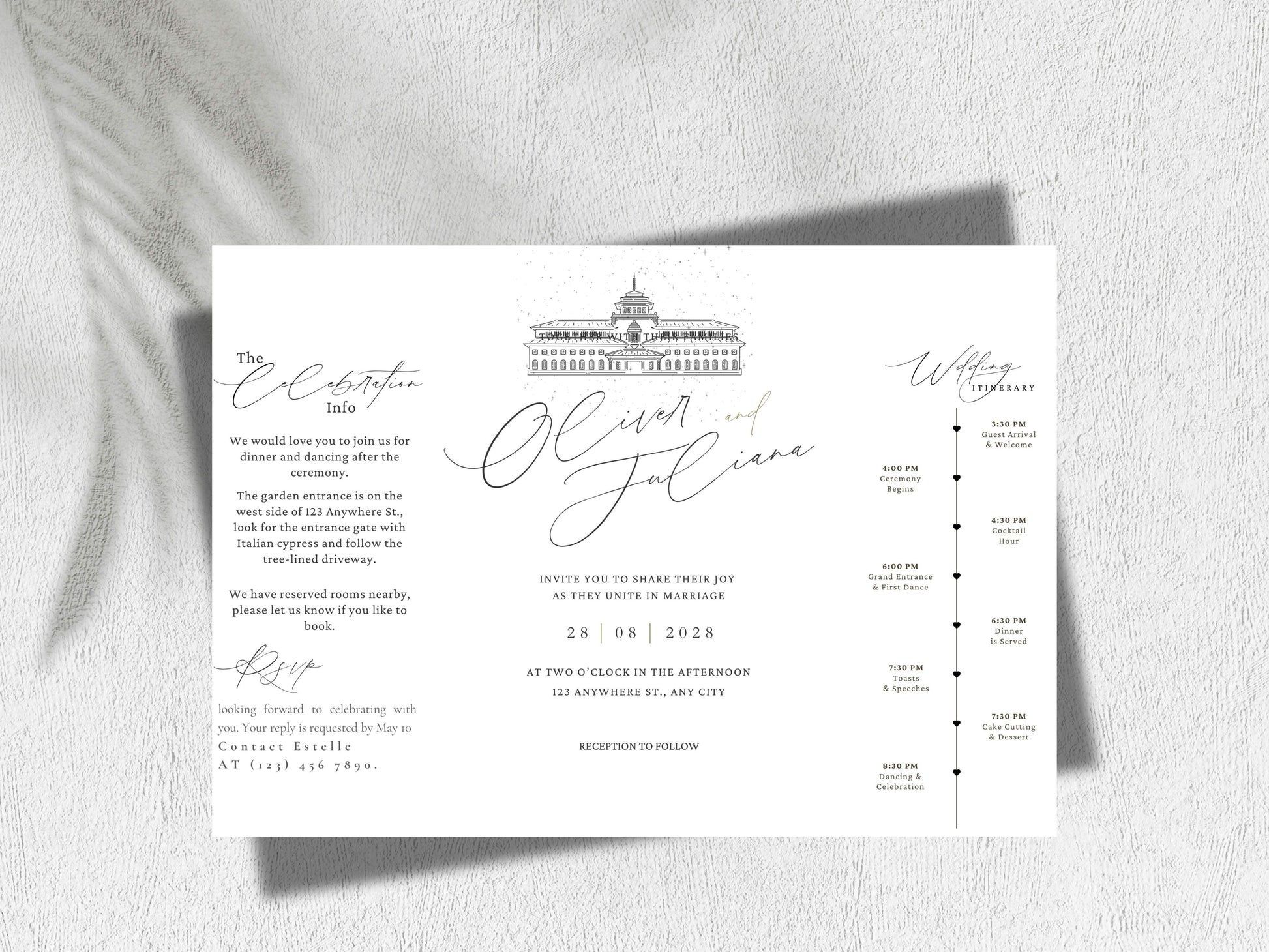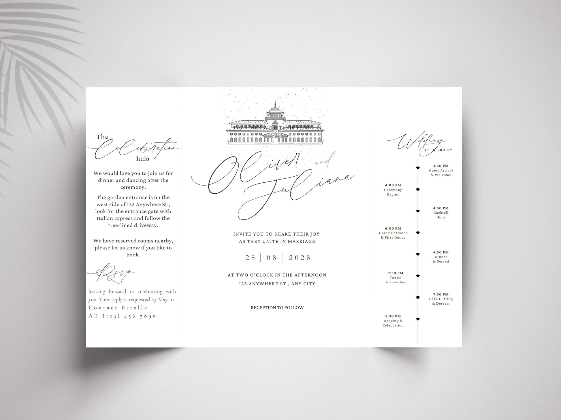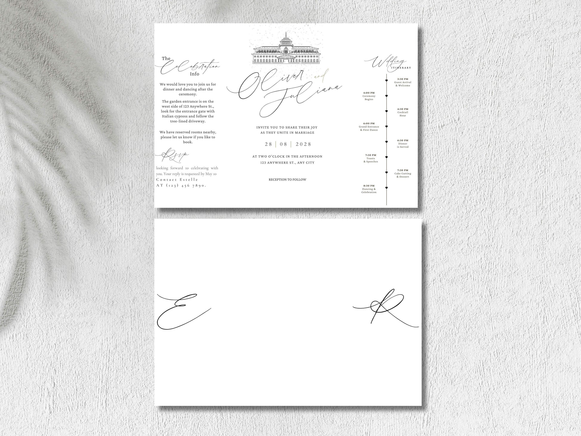 Elegant Gatefold Wedding Invitation | Modern Black & White Folded Invite | Printable Wedding Suite | RSVP and Itinerary Template. WI135