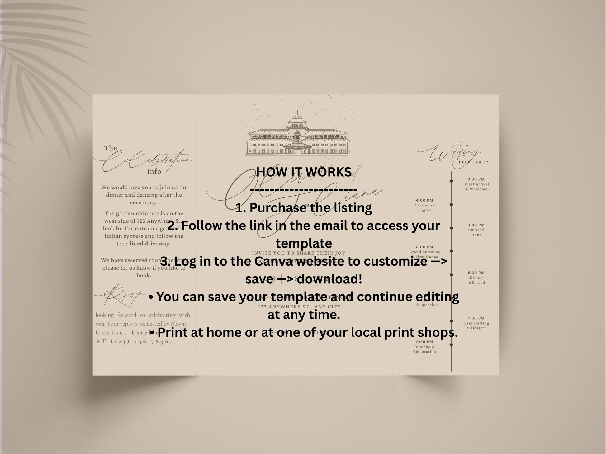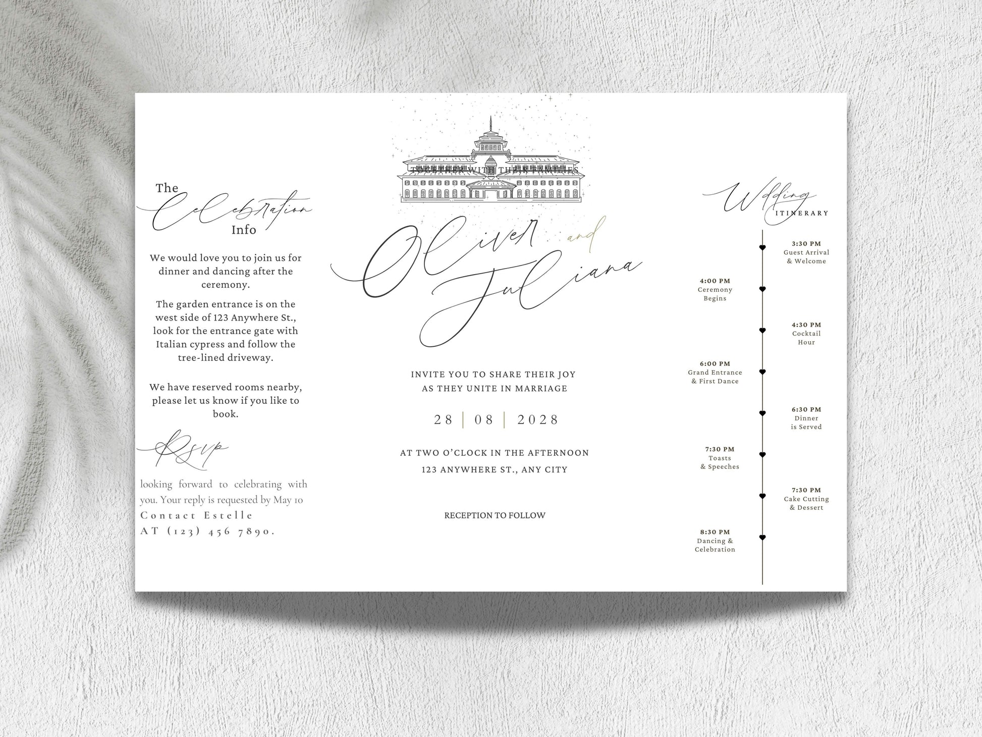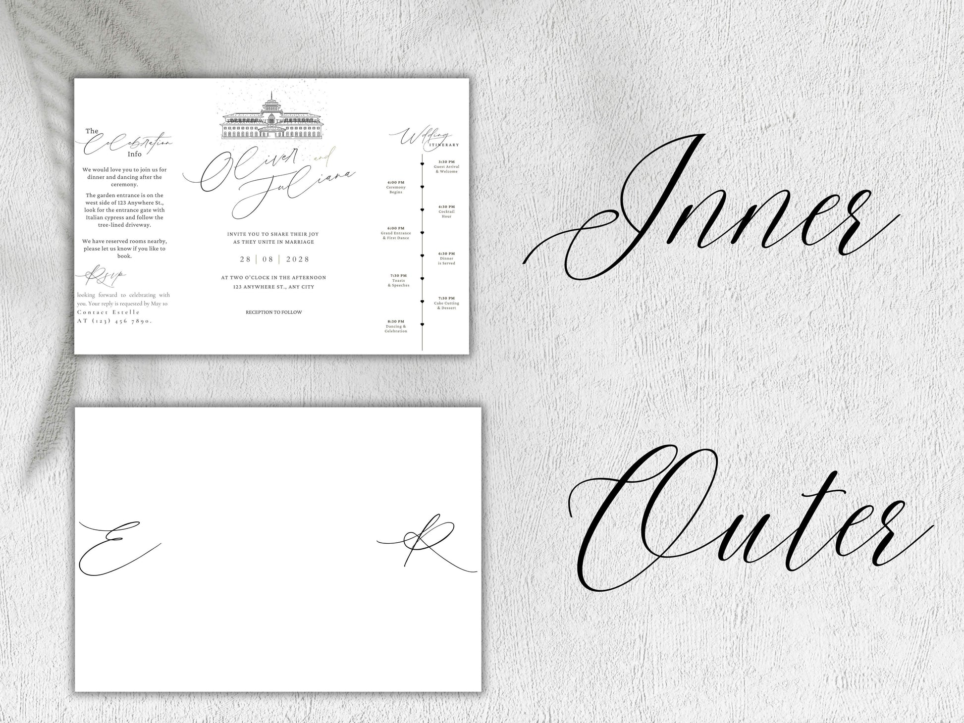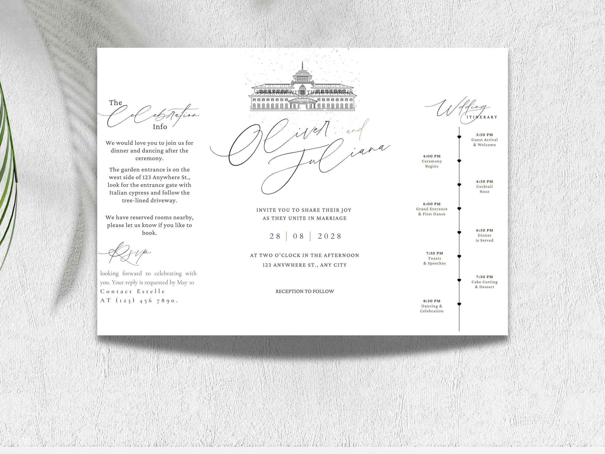 Elegant Gatefold Wedding Invitation | Modern Black & White Folded Invite | Printable Wedding Suite | RSVP and Itinerary Template. WI135
