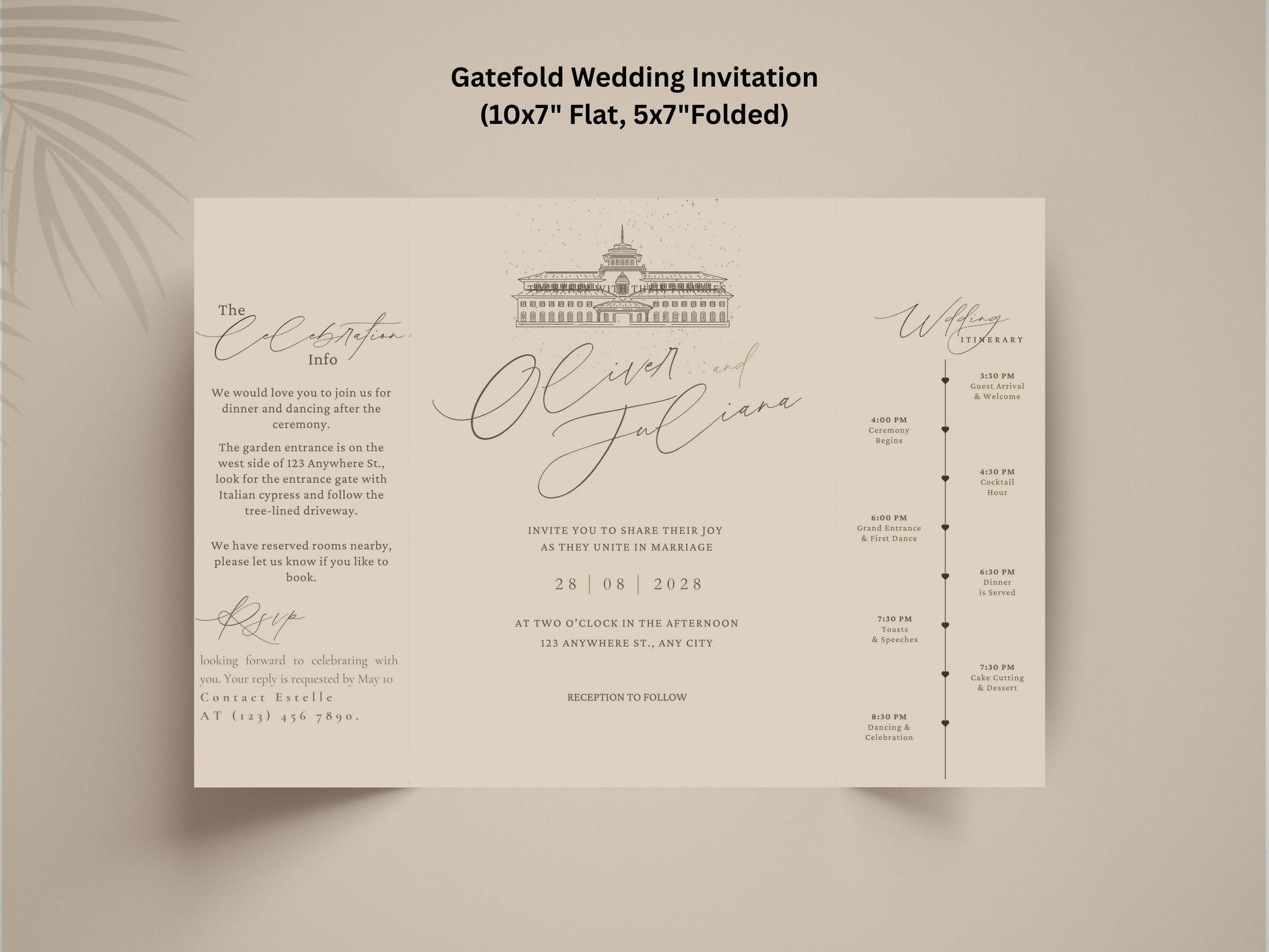 Gatefold Wedding Invitation (10x7" Flat, 5x7"Folded)
