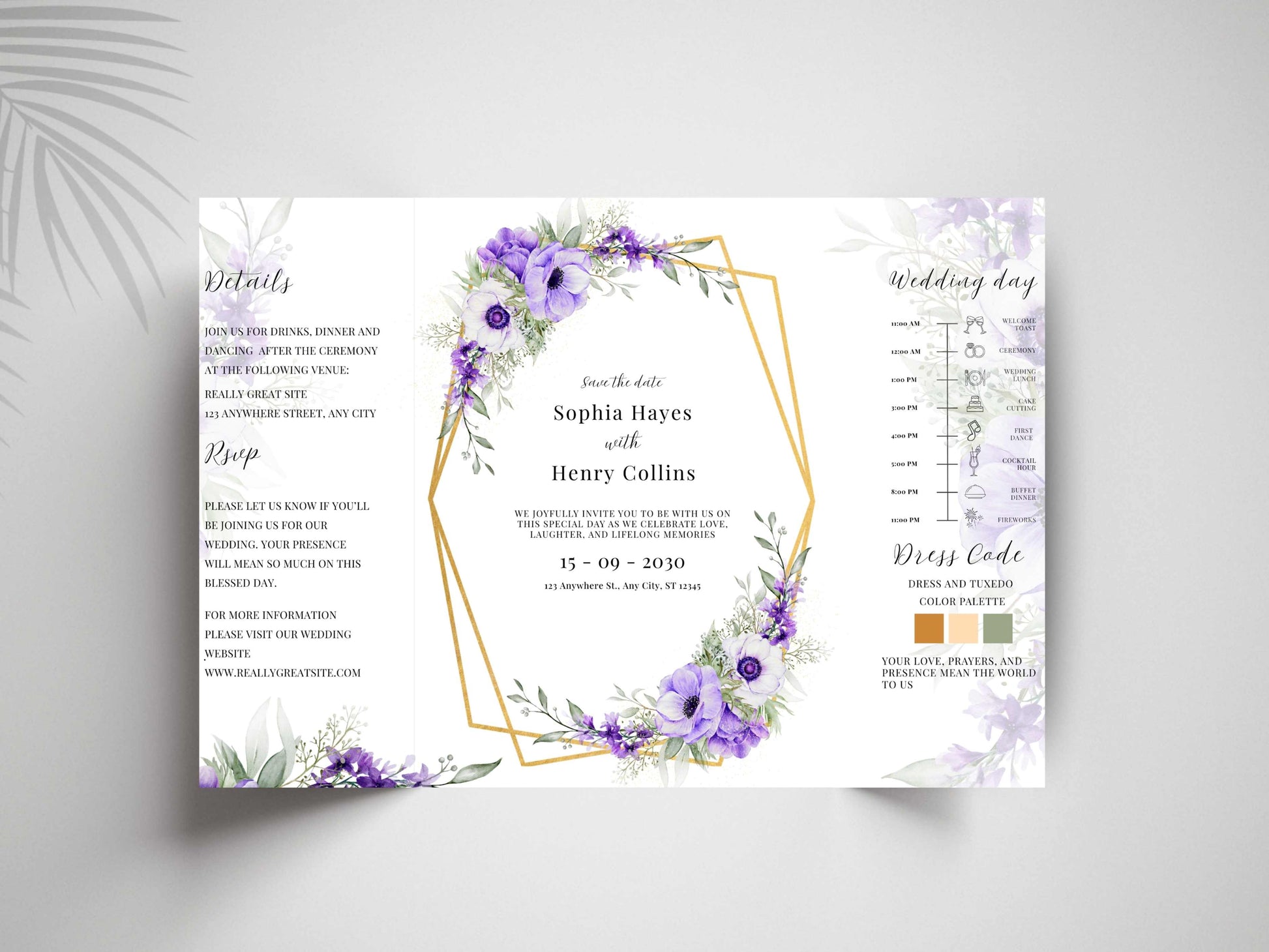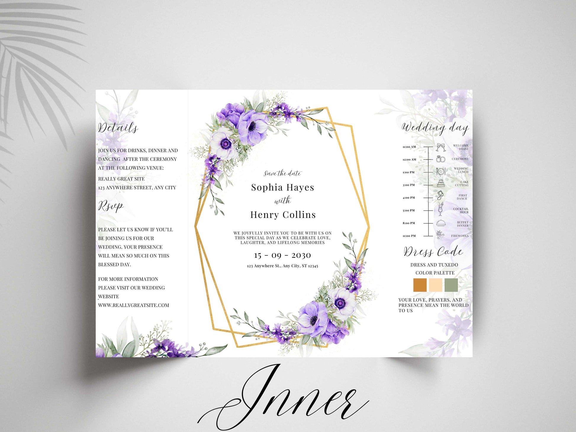 Elegant Purple Floral Wedding Invitation Template | Editable Printable Invite | Save the Date Card | Modern Romantic Wedding. WI168
