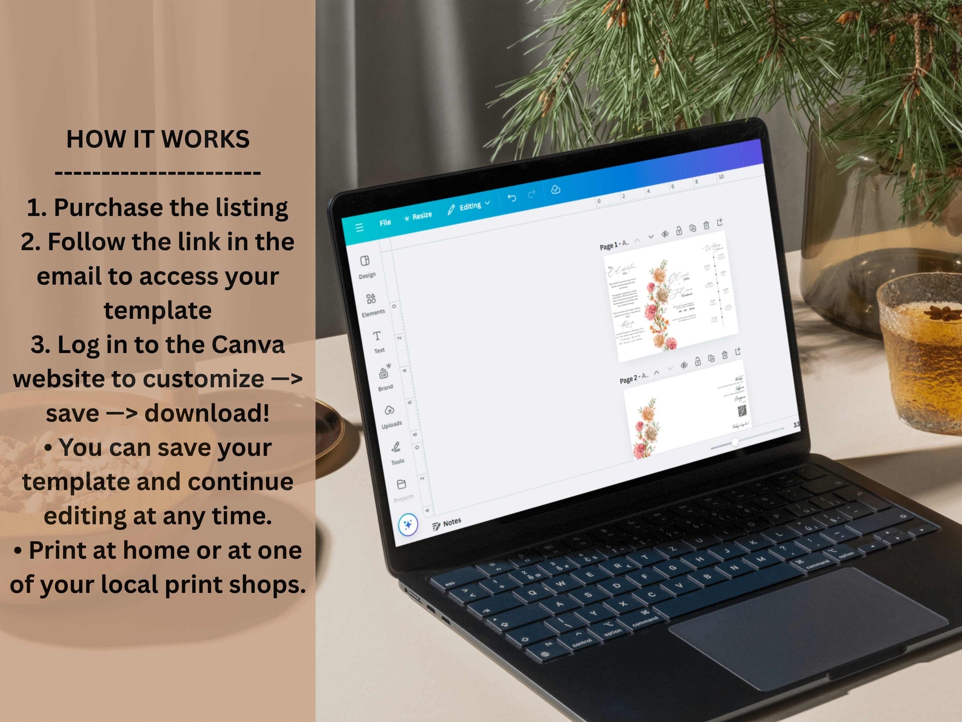 Trifold Wedding Invitation (10x7" Flat, 5x7"Folded)