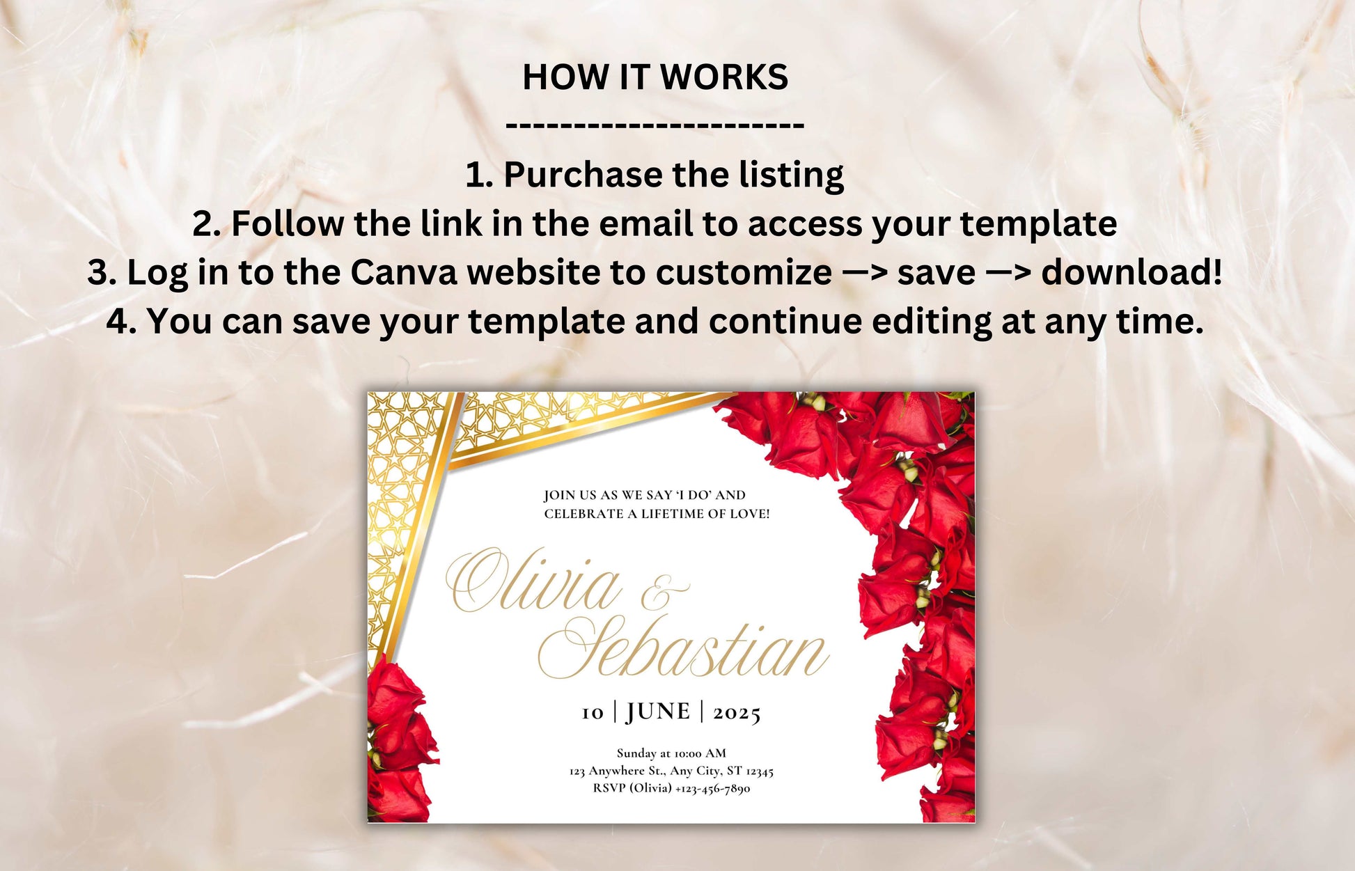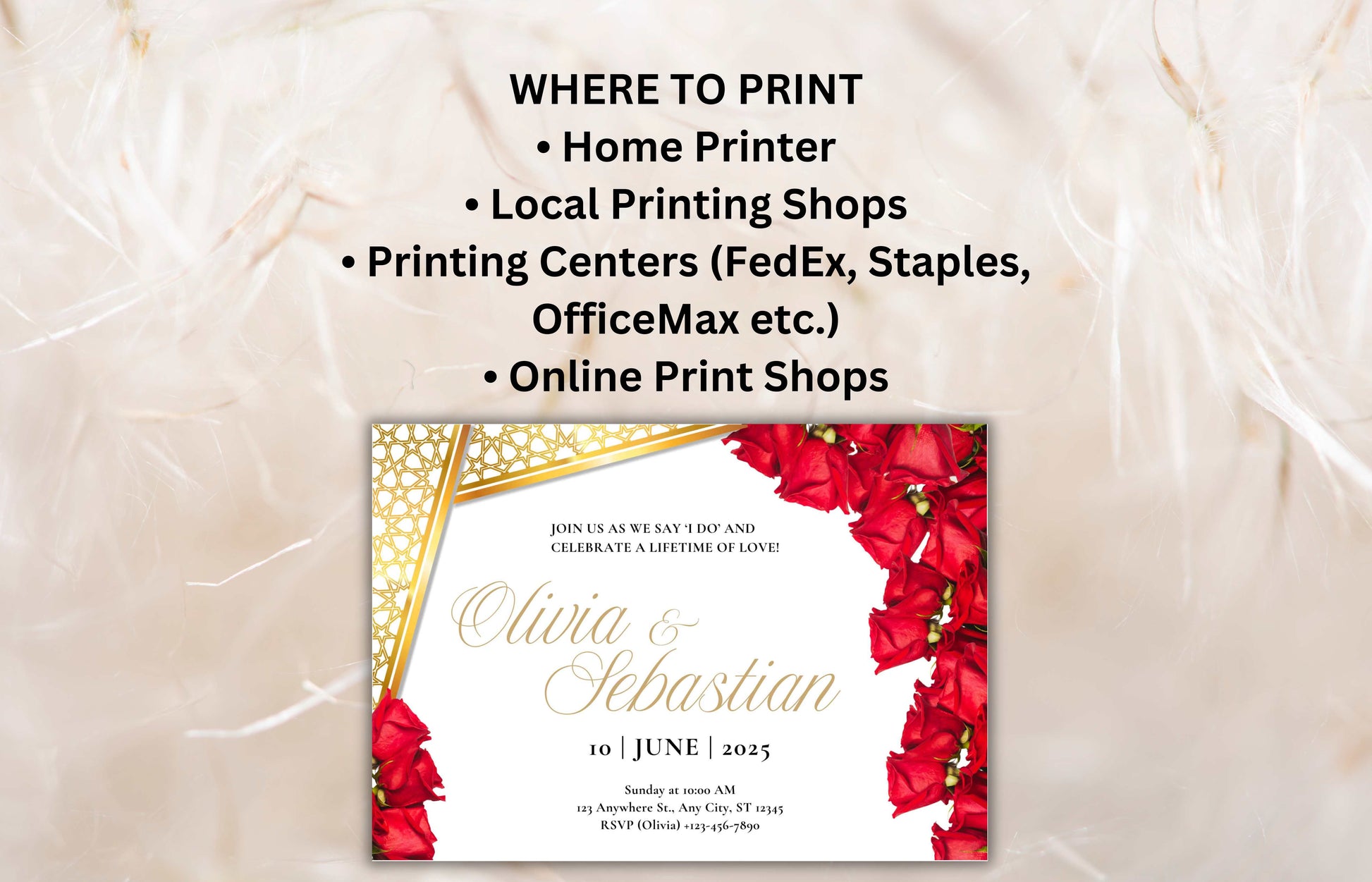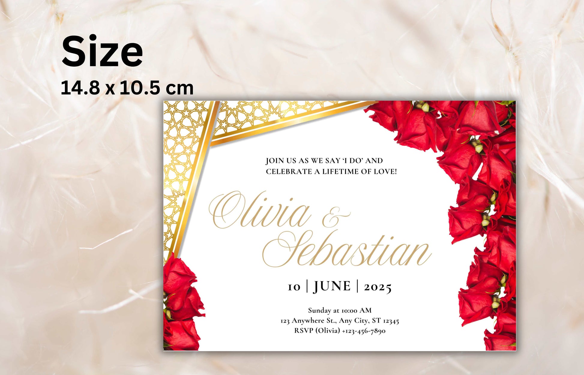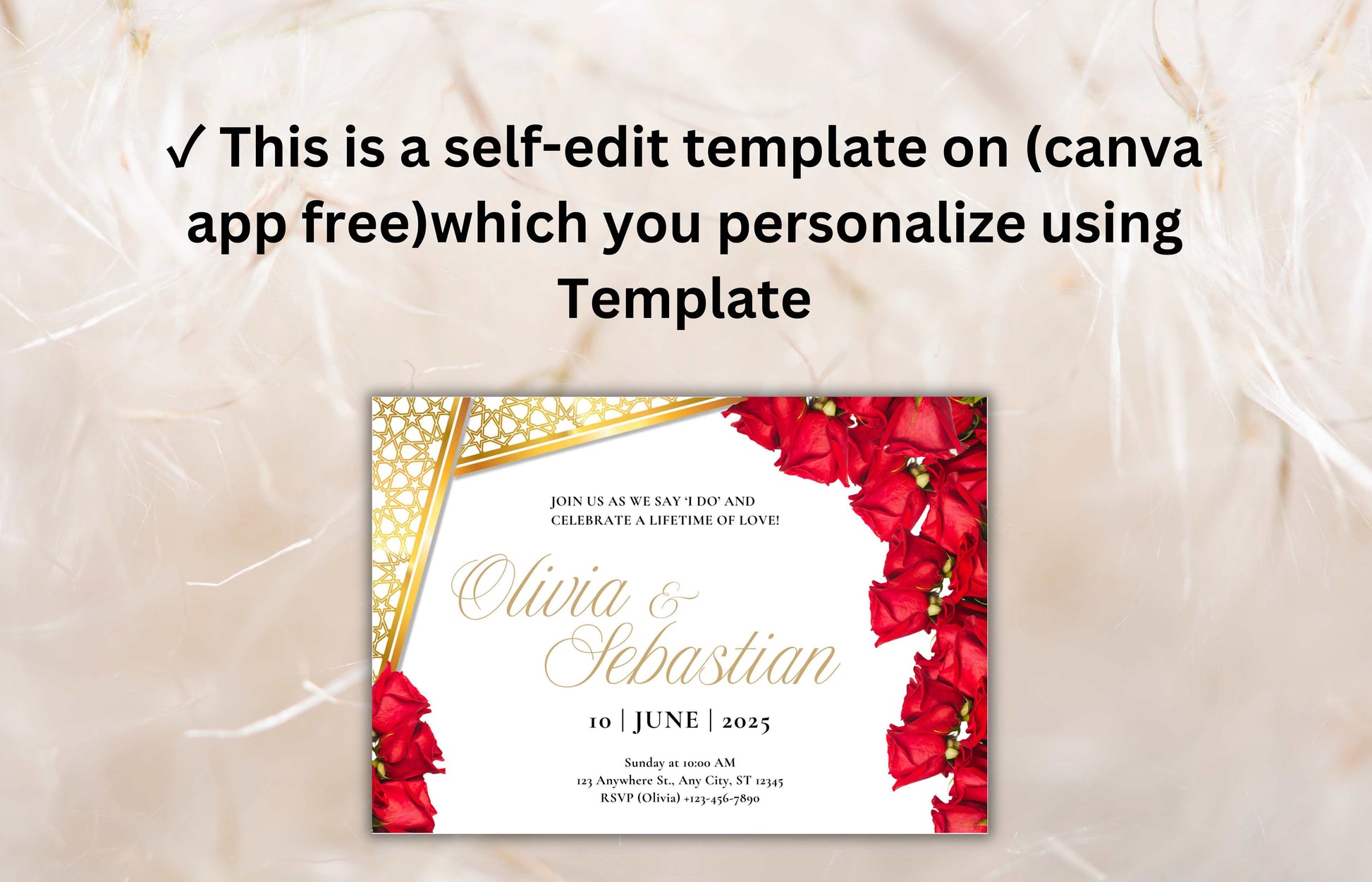 Elegant Red Roses Wedding Invitation - Editable Digital Template for Print - Customizable Romantic Wedding Invitation. WIB74