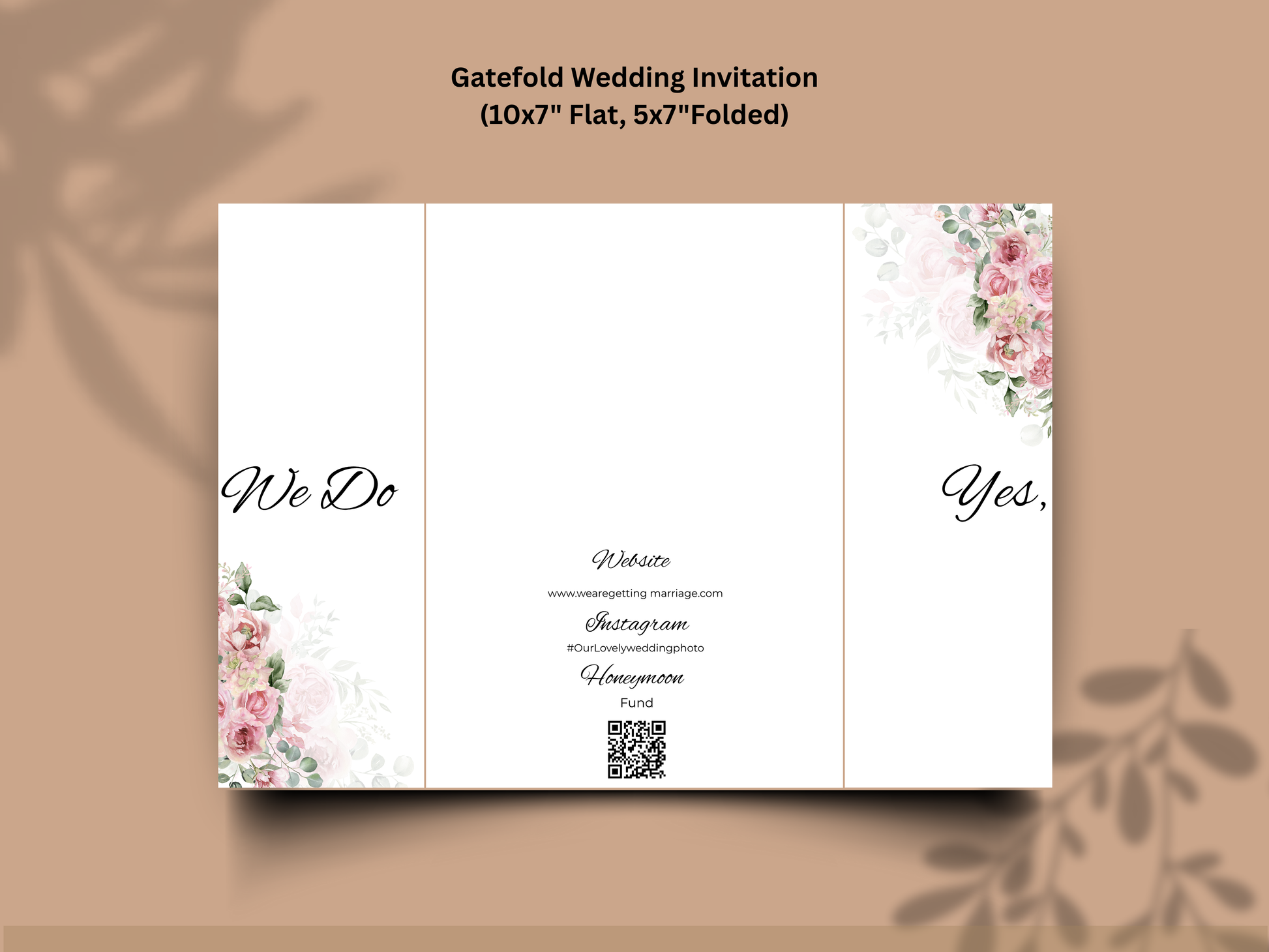 Gatefold Wedding Invitation Template (10x7" flat, 5x7" folded)
