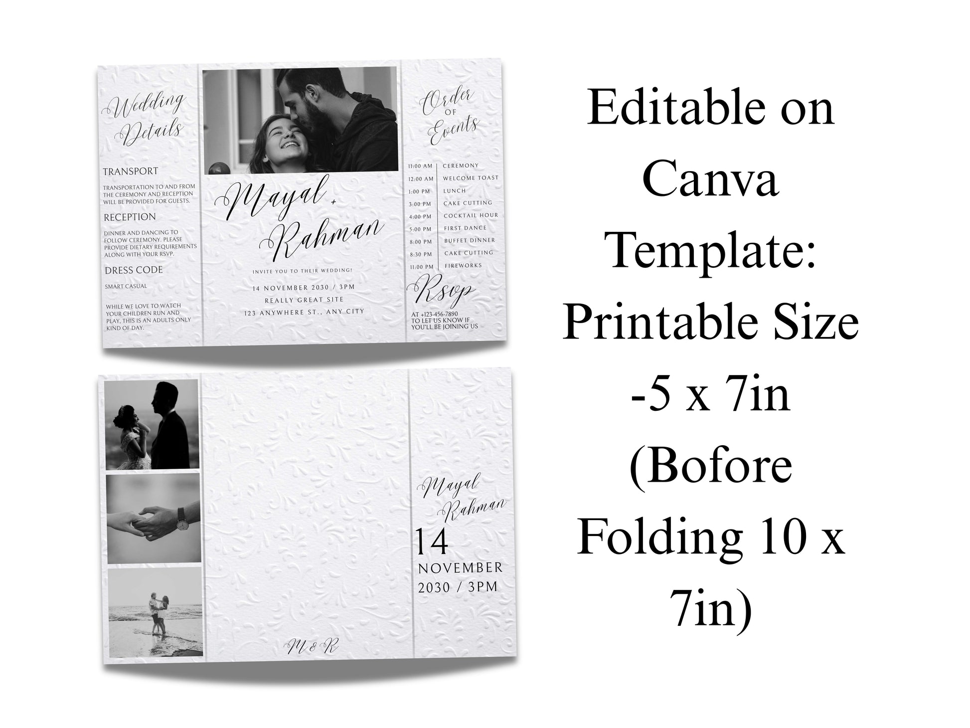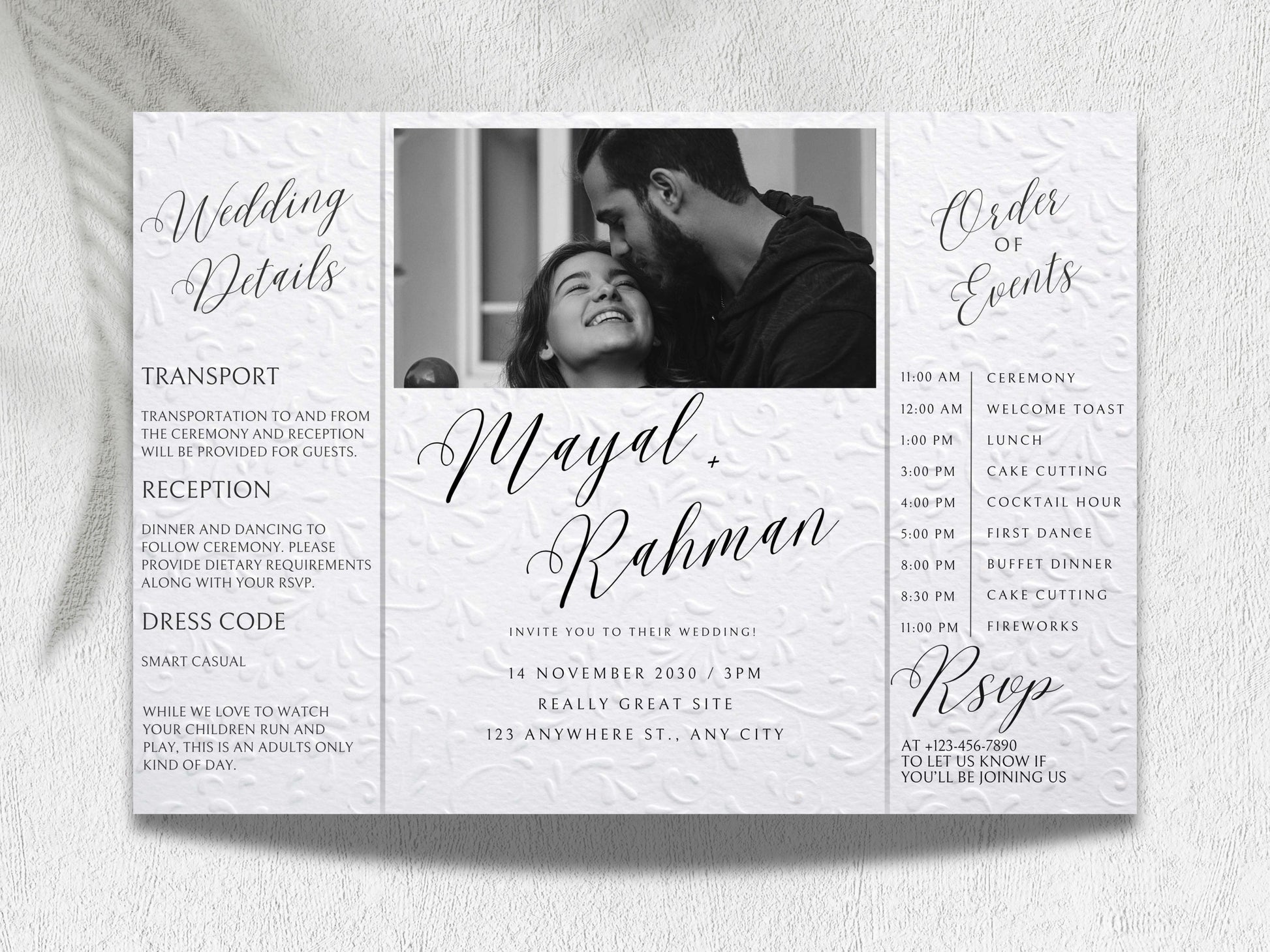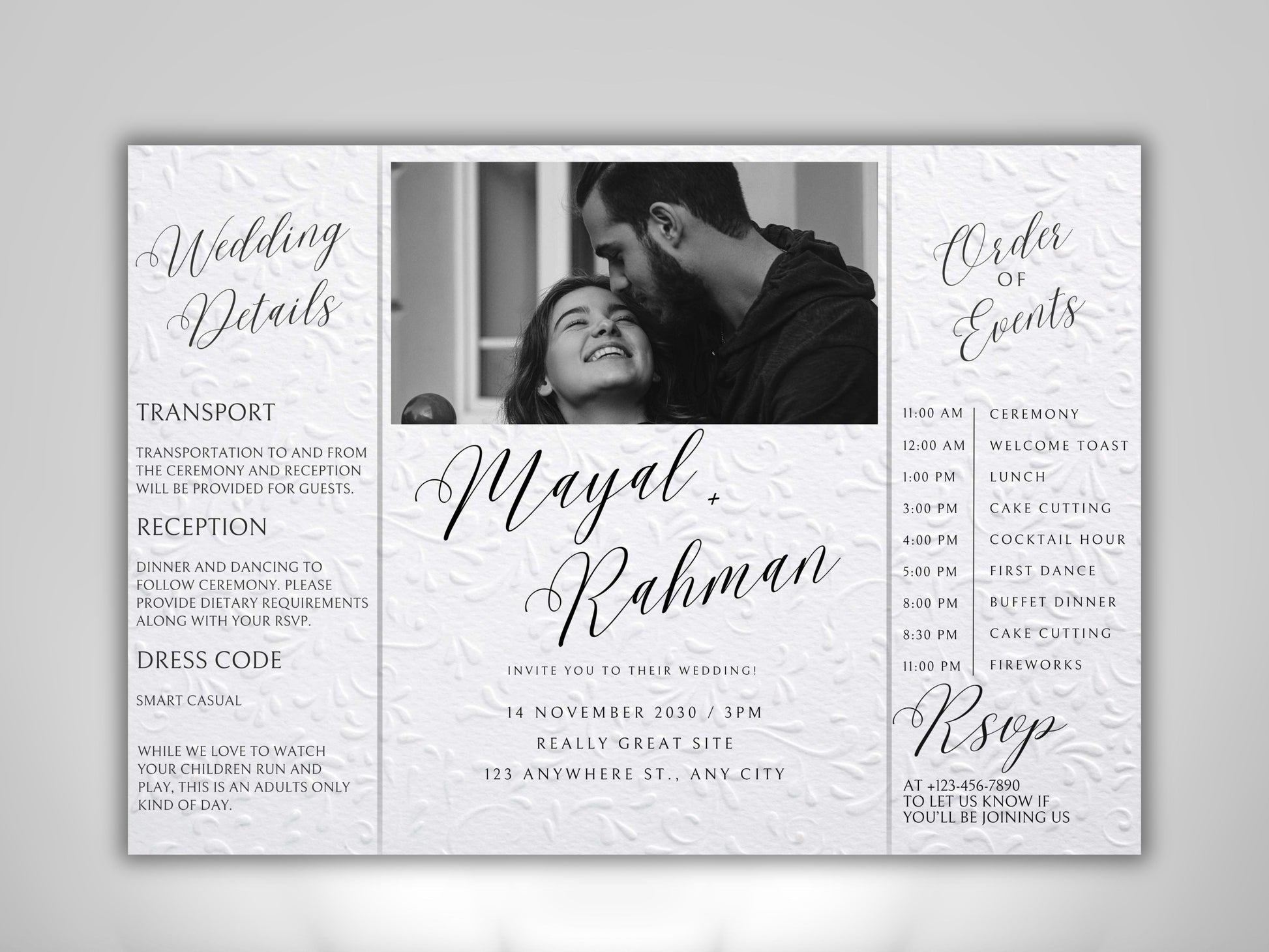 Gatefold Wedding Invitation Template | Elegant Black & White Folded Invite with RSVP Timeline | Printable Wedding Card with Photo. WEIB122