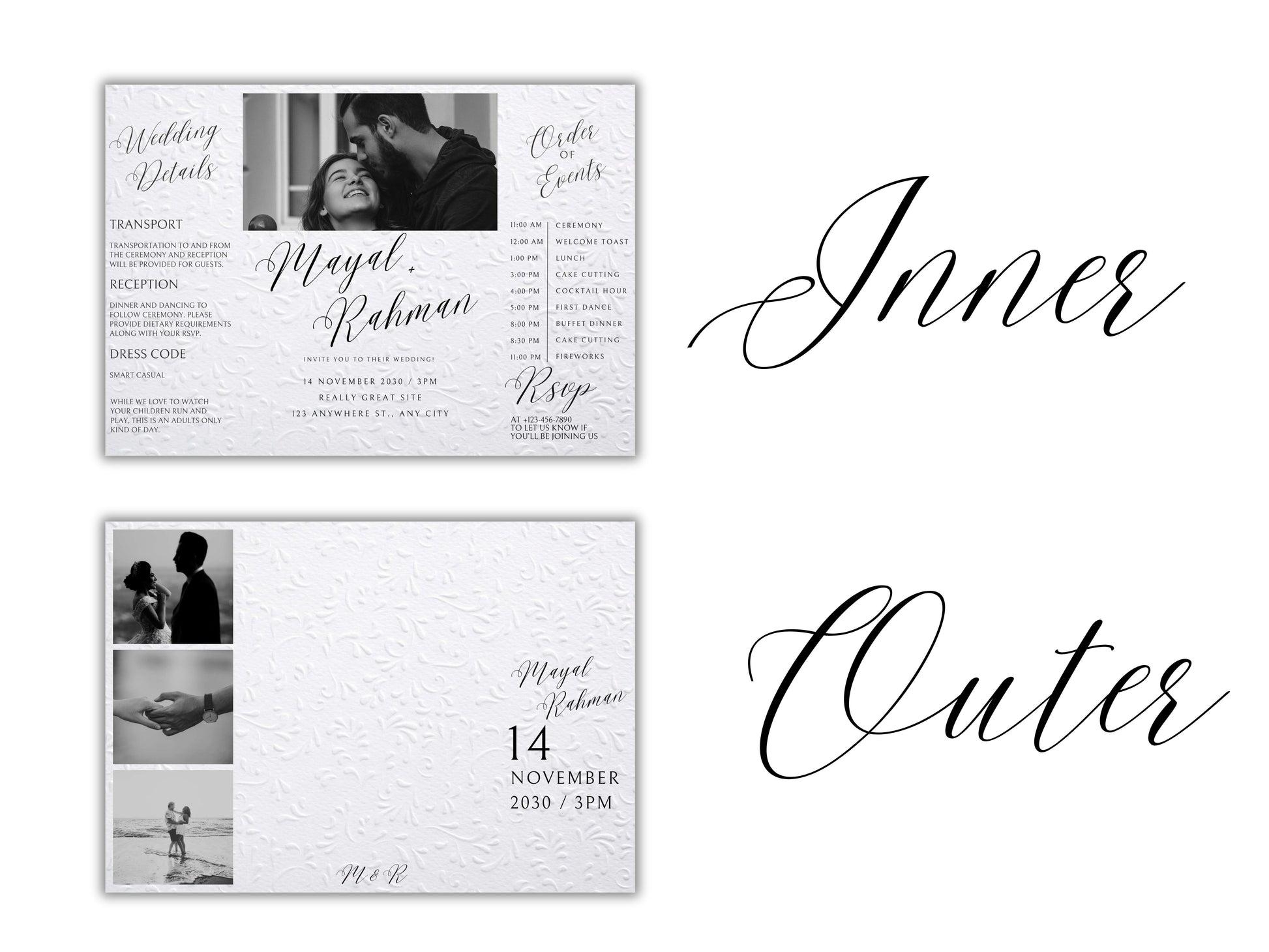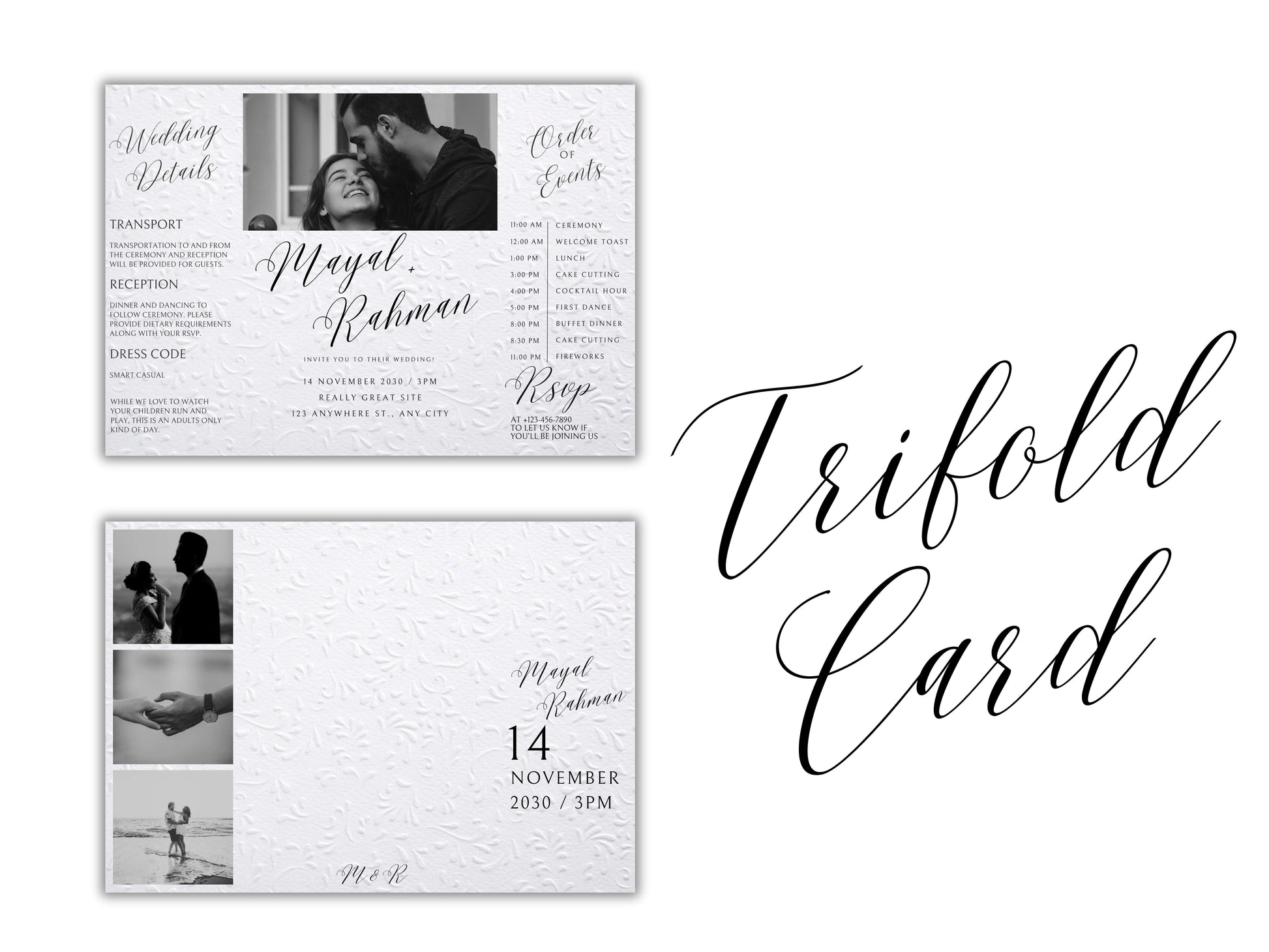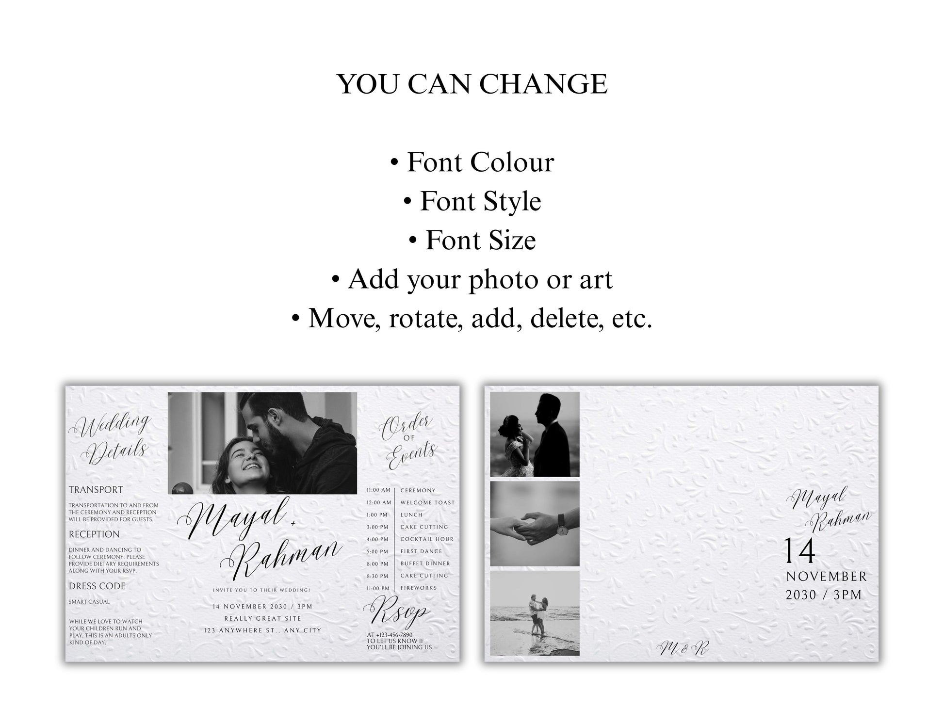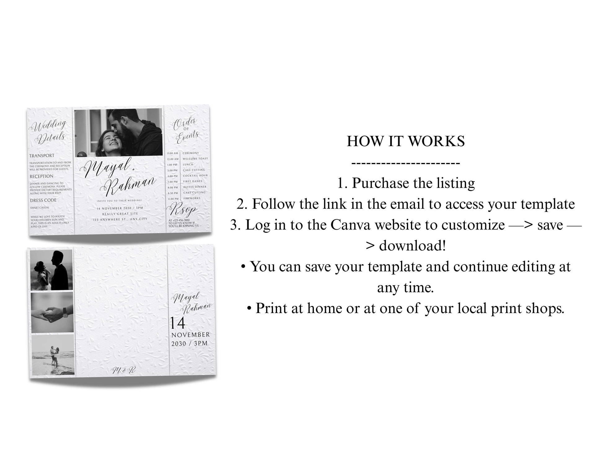 Gatefold Wedding Invitation Template | Elegant Black & White Folded Invite with RSVP Timeline | Printable Wedding Card with Photo. WEIB122
